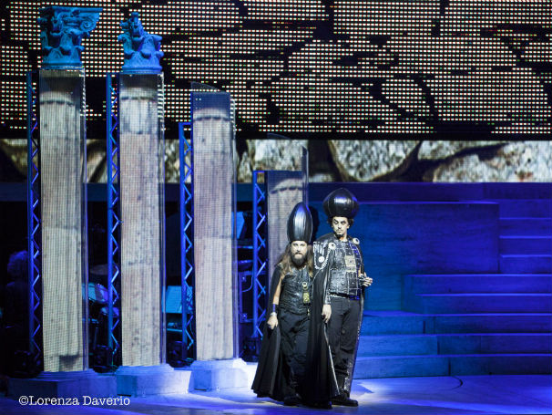 Il cast è eccezionale e oltre ai tre nomi storici, spiccano un fantastico Feysal Bonciani nel ruolo di Giuda, un memorabile Paride Acacia (che in passato fu Gesù) nei panni di Hannas il quale, in coppia con Caifa, interpretato da Francesco Mastroianni, regala al pubblico duetti metal da brivido. Divertentissimo il numero di Re Erode – Salvador Axel Torrisi – accompagnato da ballerini e acrobati vestiti da personaggi della commedia dell’arte che sottolineano l’artificiosità del suo potere. Infine tra gli apostoli, Riccardo Sinisi nei panni di Pietro ed Emiliano Geppetti nelle vesti di Simone. Lo scroscio di applausi a fine spettacolo è per tutti, ma solo Ted Neeley nel suo assolo davanti alla Croce scatena una standing ovation a scena aperta.
