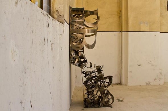 Le installazioni della mostra “Peso d’Uomo” nascono dalla sfida impossibile di filare il metallo e proprio per questo sono pezzi di rara creatività applicata alla tecnica e alla tecnologia produttiva.