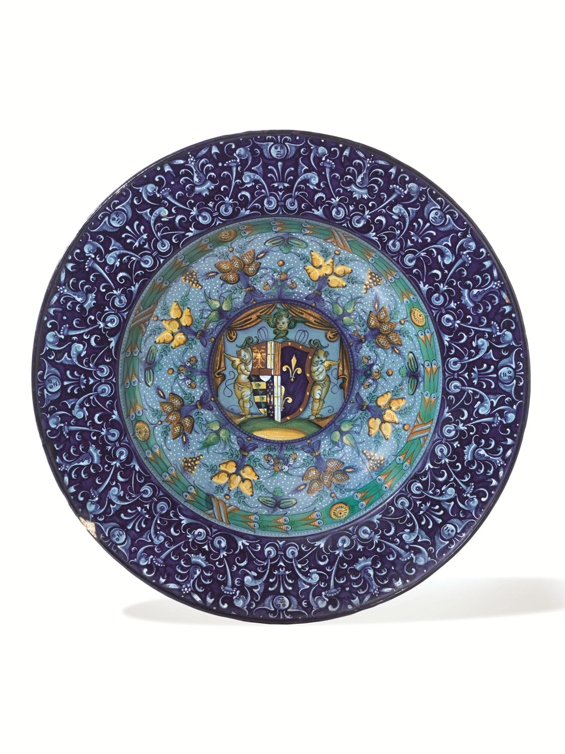 E poi un grande piatto da parata con stemma araldico, lotto 29, opera della bottega faentina di Pietro Bergantini databile intorno al 1525, aggiudicato per 301.900 euro, e un importante piatto del più noto dei maiolicari italiani, Francesco Xanto Avelli da Rovigo, dipinto ad Urbino nel 1528/29 e raffigurante la Morte di Egeo e venduto al lotto 38 per 186.000 euro.