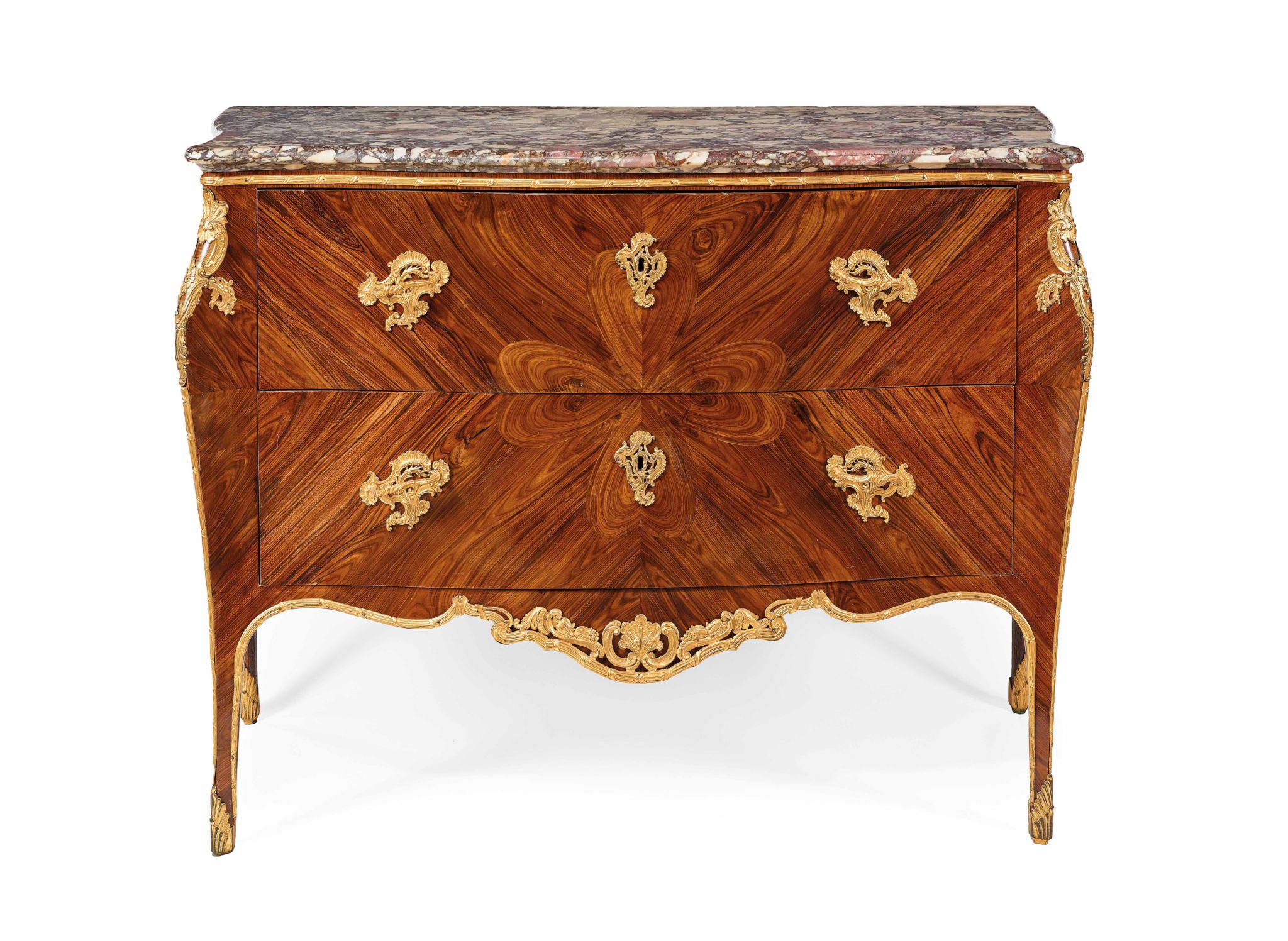 Il mobile qui presentato, per gusto decorativo e modello, sembra guardare alle produzioni dei migliori ebanisti francesi intorno alla metà del XVIII secolo, quali i Vanrisamburgh, A. M . Criard, P. Roussel, D. Genty e tra gli altri, un ebanista non meglio identificato, che firma le sue opere con le cifre, ancor oggi ignote, D. F., di cui si conoscono però diverse commodes “en laque”, ornate da bronzi cesellati e dorati (A. Pradere, Les ébénistes français de Louis XIV a la révolution, Parigi, 1989, pag. 176, fig. 159 e segg.). Si veda anche in P. Verlet, Les ébénistes du XVIIIème siècle français, Parigi, 1963, ad vocem, P. Kjellberg, Le Mobilier Français du XVIIIème Siècle, Parigi, 2002, ad vocem.