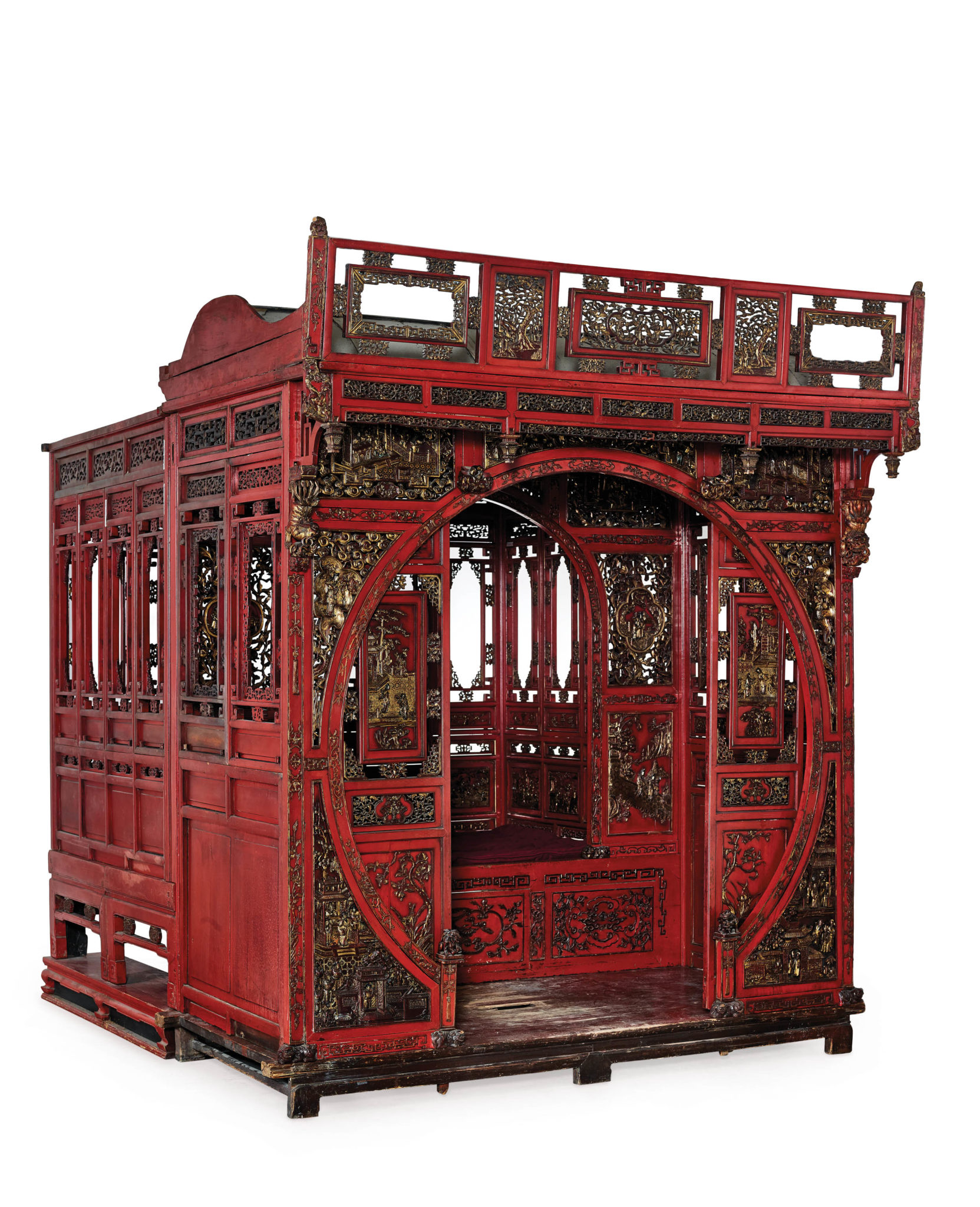 GRANDE LETTO IN LEGNO A LACCA ROSSA, CINA, XIX SECOLO