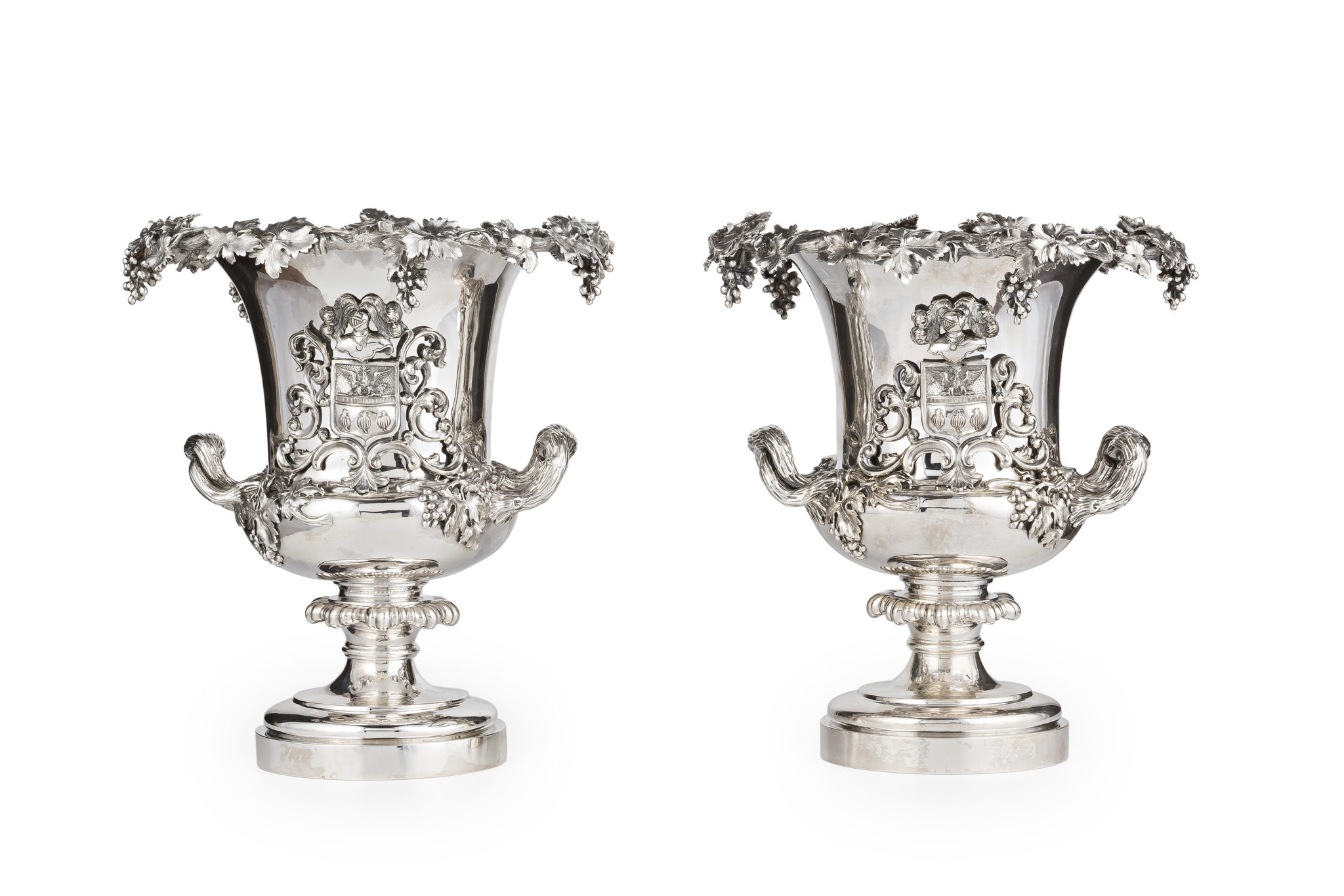 COPPIA DI RINFRESCATOI IN ARGENTO, LONDRA, 1849, ORAFO J. S. HUNT PER HUNT & ROSKELL, SUCCESSORI DI STORR & MORTIMER