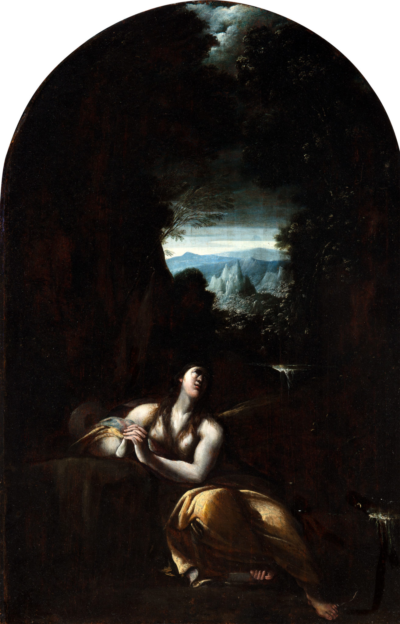 Questo dipinto, destinato alla devozione privata, era di proprietà del cardinale Benedetto Giustiniani (1554-1621) che l’aveva commissionata fra il 1606 e il 1611. Si sa con certezza, sulla base di un inventario dei beni del cardinale redatto all’epoca in cui soggiornò a Bologna come Legato Pontificio (1606-1611), che la registrazione dell’opera è avvenuta dopo il 1606. Nel 1812 questo dipinto, assieme a un suo pendant ancor oggi non rintracciato, viene riprodotto (incisione a ricalco) nel catalogo di vendita della collezione Giustinani. Nel 1815 il dipinto, assieme agli altri capolavori già Giustiniani, sarà acquistato da Federico Guglielmo III re di Prussia. L’opera resterà di proprietà degli Hohenzollern fino alla loro caduta ai tempi della creazione della Repubblica di Weimar (1918).
