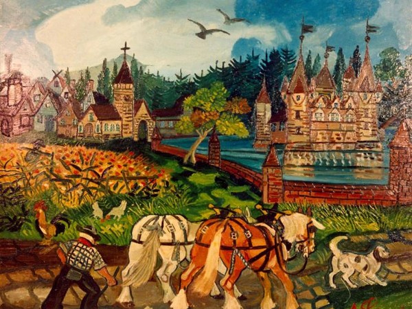 Si prosegue con l’immersione nel celebre bestiario di Ligabue, con la sua energia vitale e cromatica: dalla forza drammatica e primordiale di Leone e Zebra in lotta che si propaga nella foresta agitandola di un frenetico fuggire di animali per poi incontrare le scene di vita campestre di Cavalli con Castello e dei due dipinti raffiguranti Aratura con buoi, in cui impastando i blu, i gialli, i verdi e le terre, il pittore sembra condividere la fatica dei buoi che trascinano l’aratro a margine di fiabeschi villaggi, coronati dalle torri di chiese e castelli.