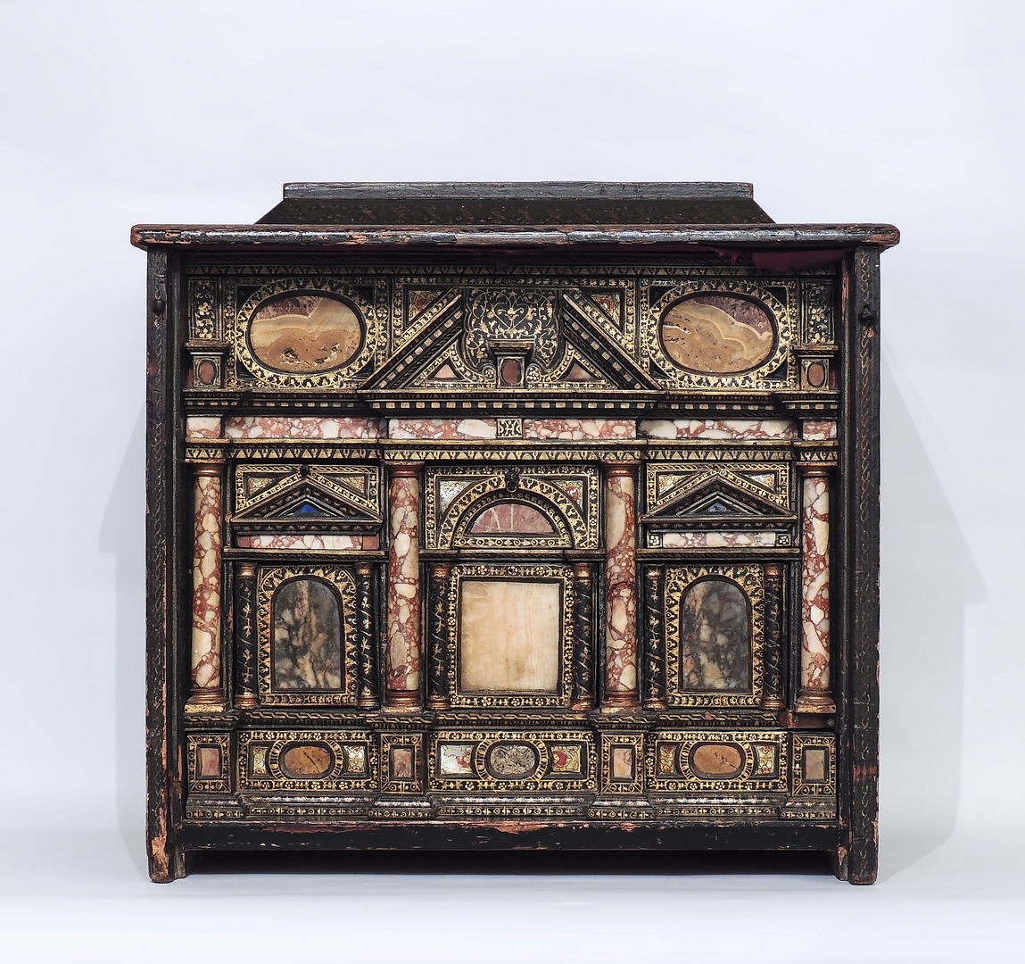 Fra gli arredi di Casa Duprè un importante stipo monetiere in legno ebanizzato e lumeggiato in oro, marmi rari e madreperla eseguito a Venezia, ultimo quarto del XVI secolo. Si tratta di un importante e raro arredo decorato in oro su fondo nero “alla persiana”: realizzato in stile architettonico e impreziosito da marmi rari, pietre dure e piccole formelle in madreperla dipinta.