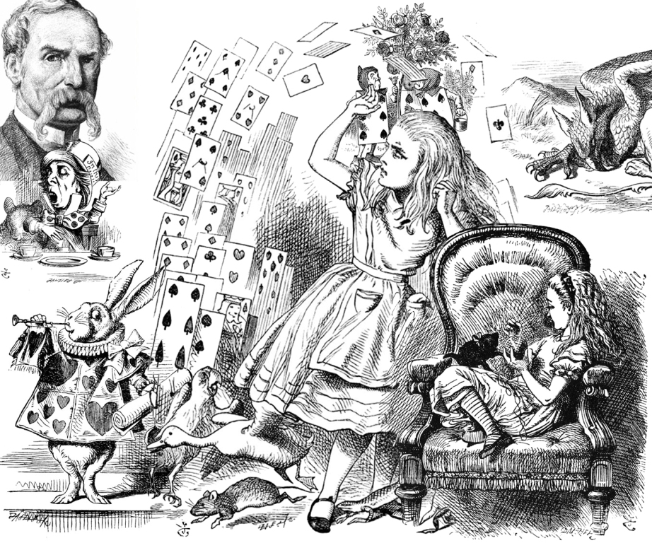 La rassegna dunque è liberamente tratta dal romanzo di Carroll. Inoltre, fanno parte del percorso espositivo le illustrazioni di Sir John Tenniel che per quasi tutta la sua carriera disegnò le vignette satiriche e le caricature per la rivista Punch, e che creò le immagini che avrebbero certamente arricchito il libro. Le opere di John Tenniel sono celebri per l’accuratezza del disegno, la precisione del tratto, l’eleganza della composizione, sebbene il loro elemento distintivo sia senza dubbio la genialità della satira.