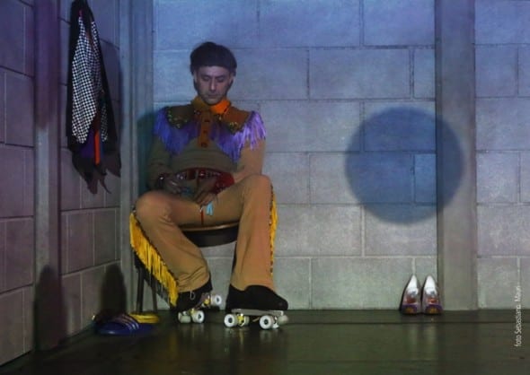 In Skianto, in scena al Teatro Franco Parenti di Milano fino al 7 dicembre, Filippo Timi torna alle origini sia di se stesso che del suo fare teatro. Infatti lo spettacolo è molto affine a La vita bestia, il suo primo monologo, e permette all’attore di riprendere confidenza con quell’umbro che fa parte della sua identità. Filippo il ragazzino portato in scena ha molto del Filippo che si nasconde dietro il testo, dall’accento alla passione sfrenata per il pattinaggio e per Heather Parisi.