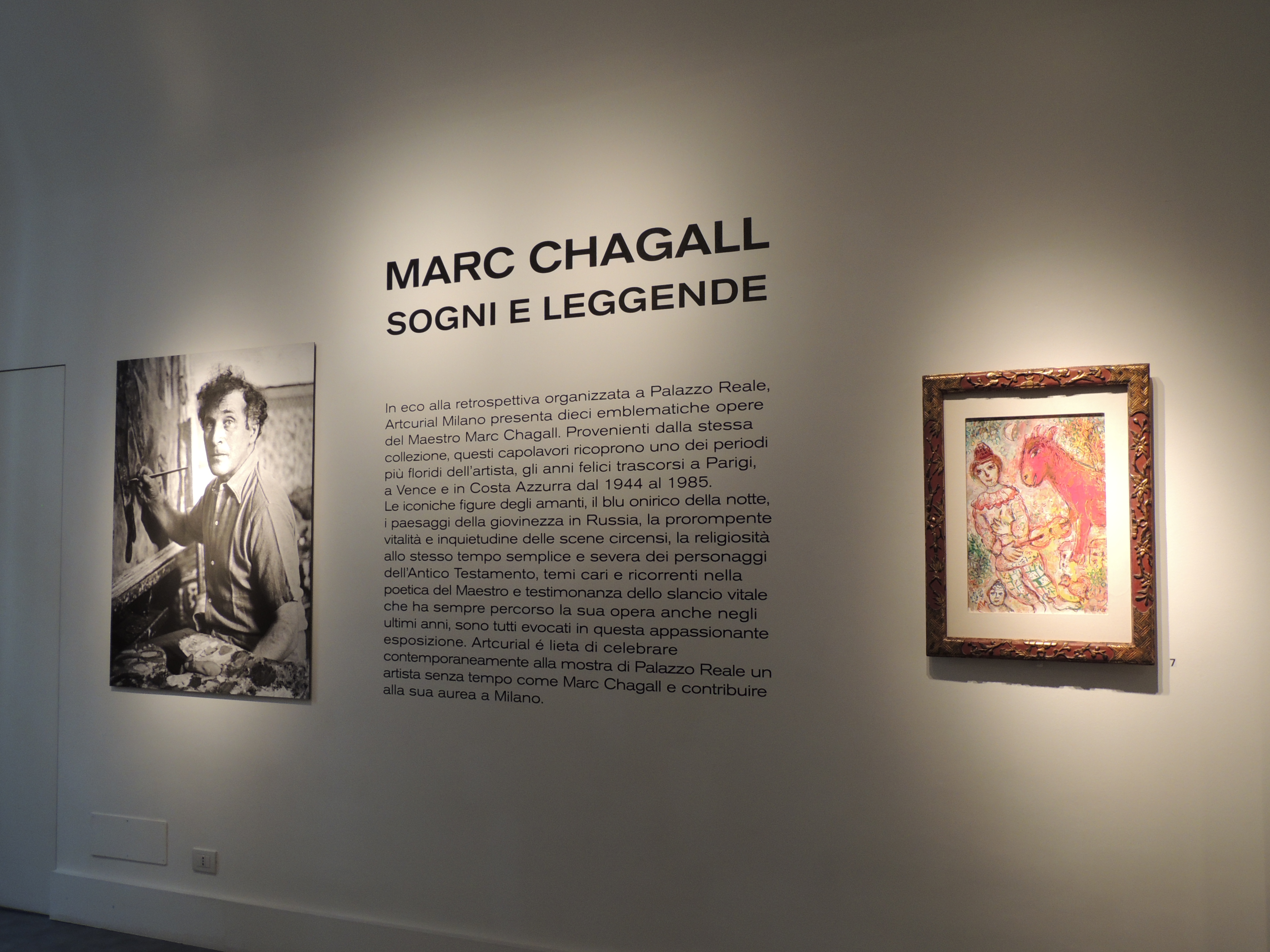 La mostra è stata organizzata in concomitanza con l’esposizione in corso a Palazzo Reale “Marc Chagall, una retrospettiva 1908 – 1985″ e vuole avere la funzione di apportare qualcosa più. Nel contesto intimo e raccolto della sede, Artcurial propone dieci opere di Marc Chagall provenienti tutte da un’unica collezione privata. Il proprietario – di cui si sa solamente che è europeo – ha prestato per la mostra questi lavori che sono stati realizzati nel periodo 1944 – 1985 e che rappresentano al meglio i temi più cari all’artista. A febbraio torneranno in Francia e saranno messi a disposizione dei collezionisti attraverso il dipartimento di Vendite Private di Artcurial.
