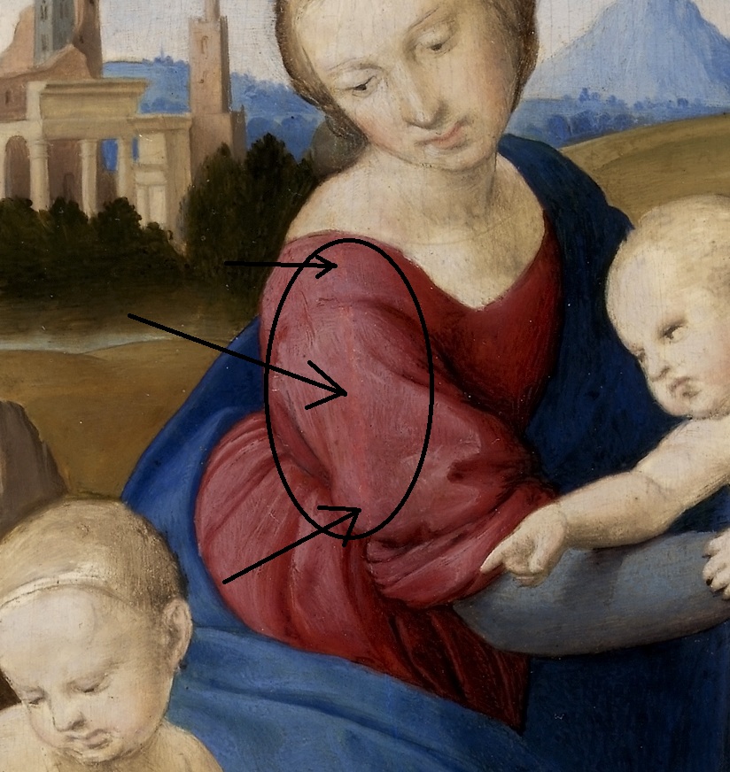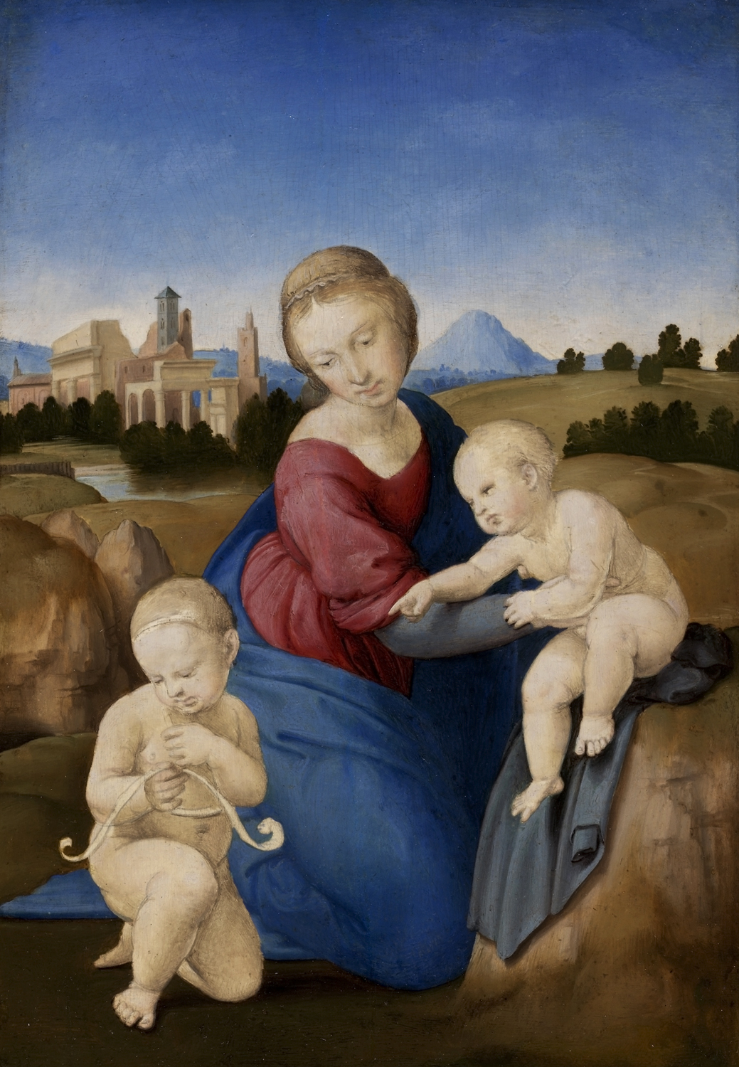 Il dipinto, raffinatissimo e solare, piccola quanto splendida tela del maestro urbinate realizzata (1508) tra due suoi capolavori presenti a Milano – lo Sposalizio della Vergine di Brera (1504) e il Cartone della Scuola di Atene (1509) dell’Ambrosiana – segna esattamente la conclusione del fondamentale periodo trascorso da Raffaello a Firenze con la decisione di trasferirsi a Roma ed entrare nel cantiere del Vaticano accanto a Michelangelo e Bramante.
