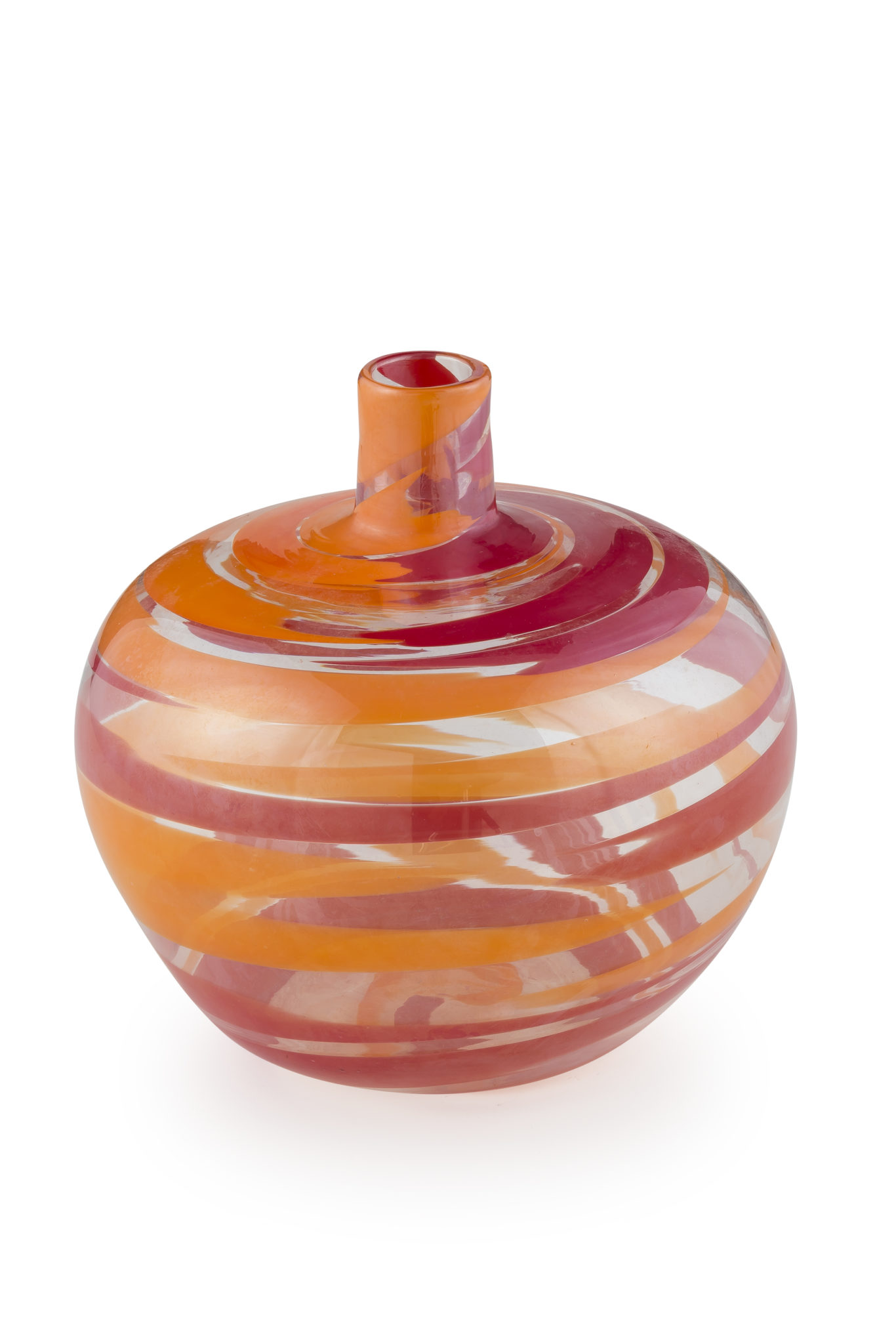 Nei suoi quindici anni alla Venini (1932-1947), Carlo Scarpa sonda ogni possibilità espressiva della materia-vetro, con esiti spesso inattesi. La tecnica del vaso a pennellate è una delle sue più felici creazioni, databile all’inizio degli anni ’40.