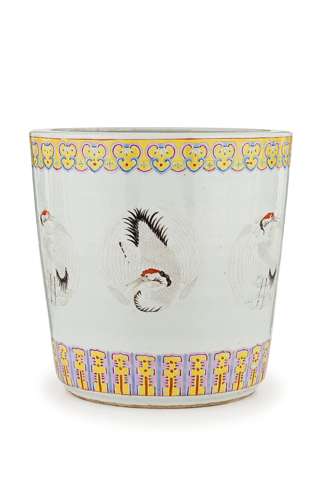 Un esempio ci viene da un importante piatto concavo in porcellana con decoro in rosso di ferro, Dinastia Qing, marcato e del periodo Yongzheng (1723-1735) (lotto 85 stima 25.000 – 35.000 euro), e da un grande vaso in porcellana “Famiglia Rosa” Canton della seconda metà del XIX secolo con decoro a tutto tondo, in cui il soggetto predominante è il pipistrello, simbolo della buona fortuna, raffigurato capovolto per sottolineare che questa è arrivata (lotto 25 stima 7.000 – 10.000 euro).