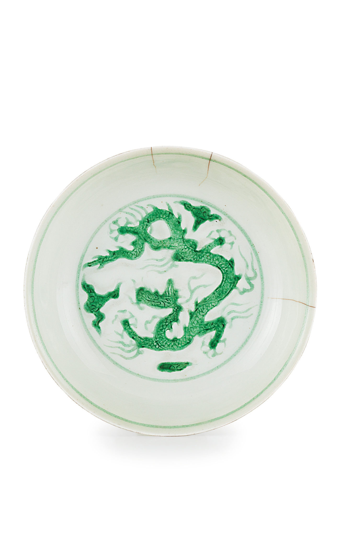 Il drago che dall’epoca Han è il simbolo imperiale cinese – generalmente raffigurato che insegue la perla infuocata, è il primo e più potente dei quattro animali sovrannaturali (gli altri tre sono nell’ordine: fenice, liocorno e tartaruga) – lo troviamo in un fine e raro piatto in porcellana smaltato in verde con draghi incisi a decoro segreto, Cina, Dinastia Ming, marchio e del periodo Zhengde (1506-1521) (lotto 80 stima 18.000 – 25.000 euro), e in un grande piatto in biscuit a tre colori e cinque draghi incisi, Cina, Dinastia Qing, marchio Kangxi (1662-1722) (lotto 95 stima 6.000 – 8.000).