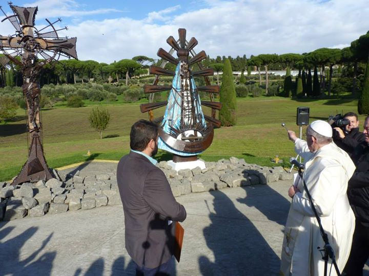 La scultura “Vergine di Lujan” e il “Cristo Operaio” di Alejandro Marmo, sono state realizzate in collaborazione con un gruppo di ragazzi “difficili”, emarginati, arrivati dall’Argentina per questo progetto.