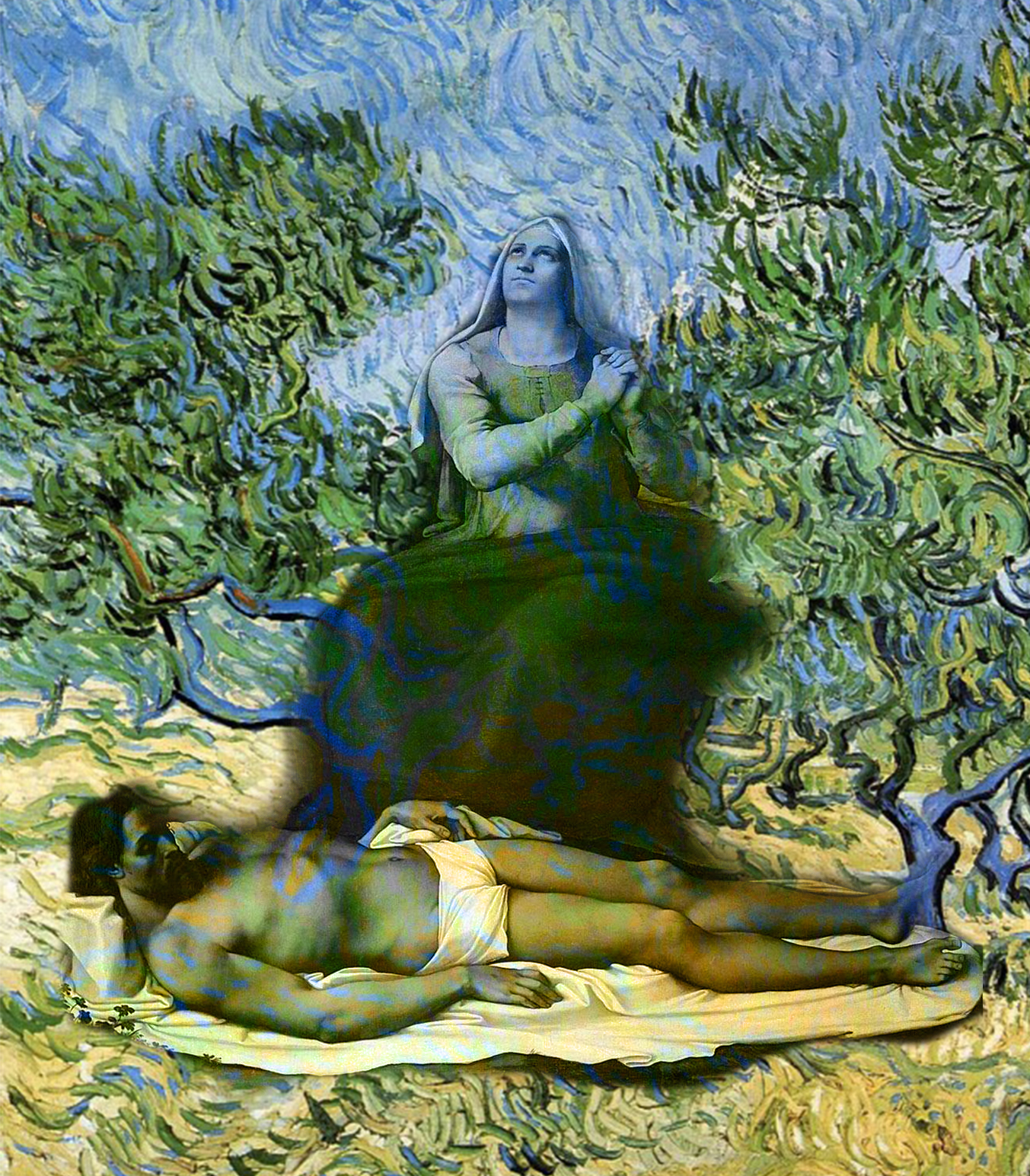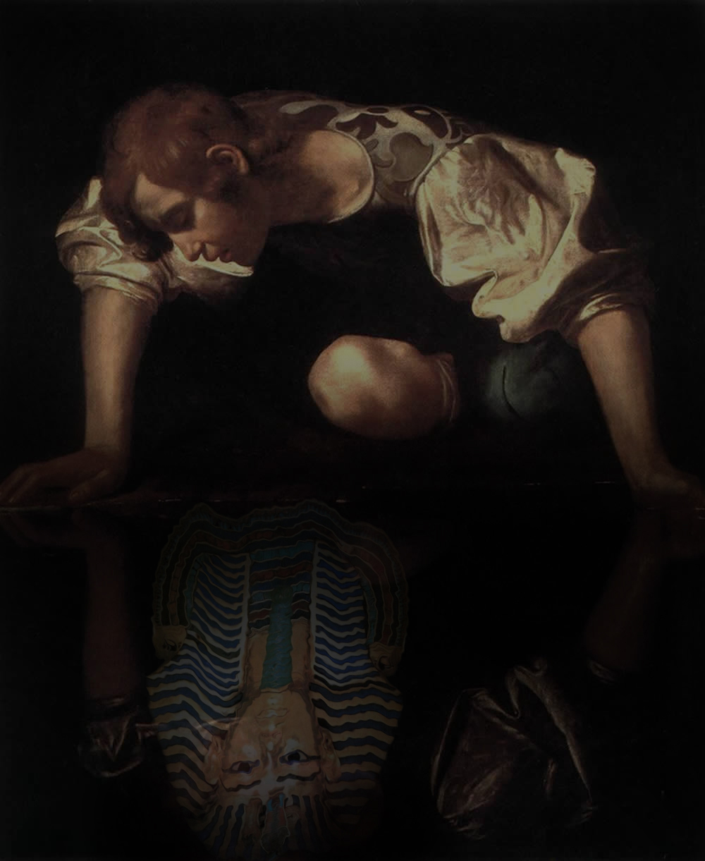 Il “faraone bambino” si reincarnerà sul “letto” del Rodano, Caravaggio – in esilio nella Valle dei Re – riprodurrà l'”immagine vivente di Amon”, Van Gogh seminerà pittura sulle rive del Nilo. Non mancheranno Narcisi caravaggeschi riflessi nello “stagno” stellato del Rodano, Pietà veneziane oranti tra gli uliveti provenzali, piramidi che svettano tra campi di grano e cipressi vangoghiani bruciati dal sole sahariano, Sfingi al chiaro di luna di Friedrich, Tutankhamon in Rothko grigio-nero e Ritratti di giovani pensosi rinascimentali di fronte agli ‘”Empori” dipinti da Hopper.