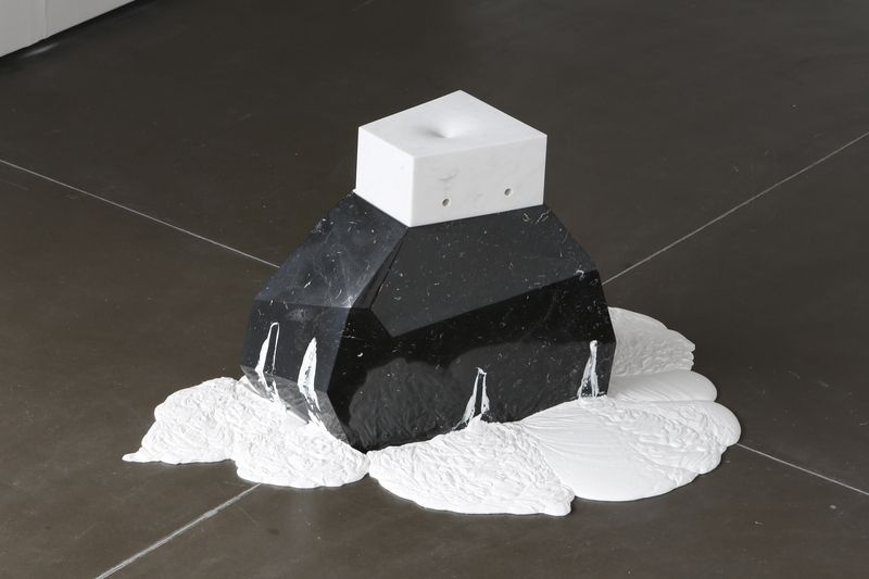 Marmo bianco statuario, marmo grigio bardiglio, polistirolo, zucchero