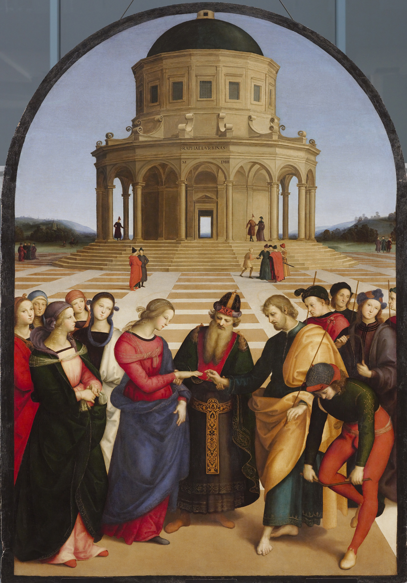 Per la prima volta giunge in Italia dal Museo di Caen lo Sposalizio della Vergine di Pietro Vanucci detto il Perugino, realizzato tra il 1499 e il 1504 per il Duomo di Perugia. Il grande dipinto su tavola sarà posto a confronto con il capolavoro dell’allievo Raffaello in un emozionante dialogo.