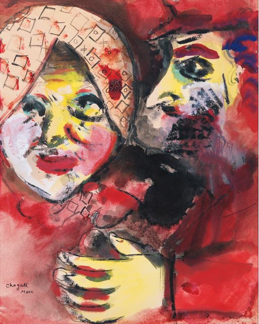 Marc Chagall (1887-1985) My Parents gouache and watercolour on paper 20 x 13 3/8 in. (50.8 x 34 cm.) ESTIMATE £400,000 – £700,000 ($603,200 – $1,055,600)