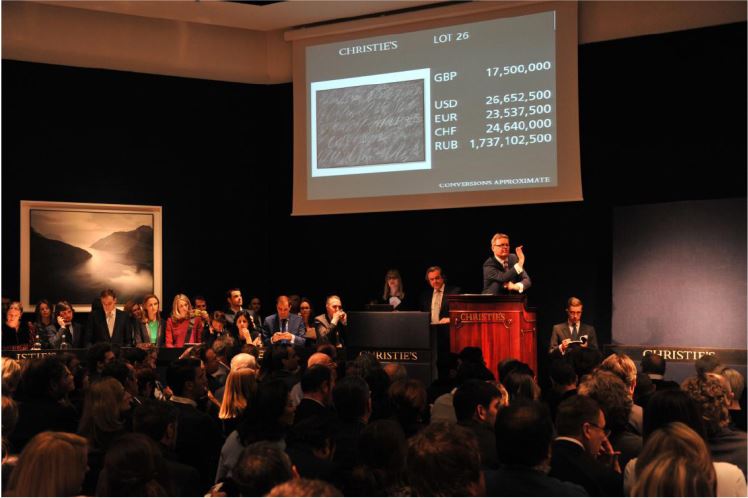 Christie’s – 11.02.2015 _ Sulle acque del Tamigi si specchiano i capolavori dei Contemporanei. Dopo il successo di Sotheby’s che nella serata del 10 febbraio ha scritto nella storia il totale più alto mai raggiunto in un’asta di Arte Contemporanea in Europa, questa sera, 11 febbraio, è stata la volta di Christie’s. Anche per la maison di Pinault un risultato a nove cifre: £117,142,500. Totale che si classifica come il secondo più alto tra le omologhe vendite londinesi della casa d’aste, inferiore solo ai 124.192.000£ archiviati nel febbraio 2014.