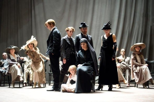 Accanto a Lavia, nel ruolo della figliastra, che nel ’93 per la regia di Missiroli impersonava Monica Guerritore (moglie di Lavia), troviamo in questa versione la loro figlia, Lucia Lavia. Agguerrita, carica di enfasi, Lucia Lavia si muove su e giù dal palco come una trottola, fino a bloccarsi, nella scena clou nel retrobottega si Madama Pace, quando a pronunciare quel “Buongiorno signorina” è la voce del primo marito di sua madre, interpretata quest’ultima da Rosy Bonfiglio. Scritta analfabeta da Pirandello, è una sua nenia siciliana ad esprimere angosciosamente le sue pene. E il pathos aumenta in quell’urlo, prima silenzioso, poi straziante, della donna chinata difronte alla squallida scena, braccia levate al cielo come la Maddalena del Masaccio ai piedi della Crocifissione.