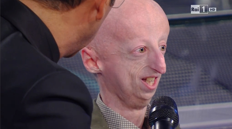 Sammy, che stasera è accompagnato dai suoi genitori, studia Fisica all’Università e si impegna ogni giorno in un quotidiano segnato pesantemente dalla sua rarissima malattia. Nel mondo sono solo 103 gli affetti da Progeria.