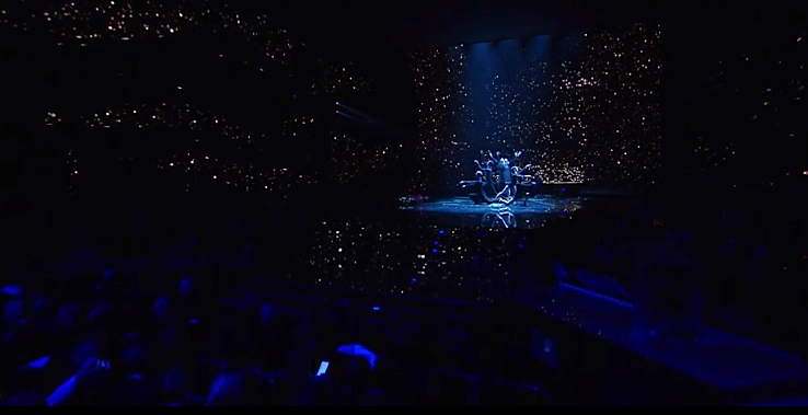 A Sanremo 2015 presentano una poetica “breve storia della musica”. Uno straordinario intreccio di passi di danza, ombre cinesi, proiezioni, giochi di prospettiva, che in pochi istanti creano decine di differenti quadri e immagini.