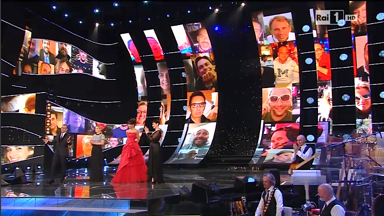 Prima della proclamazione del vincitore del Festival il giusto ringraziamento a tutti coloro che lo hanno reso possibile, con le loro immagini che scorrono sulla bella scenografia di Riccardo Bocchini