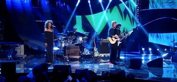 E’ il momento del 20enne inglese, campione di incassi Ed Sheeran che presenta due brani del suo album prodotto da Pharrel Williams, sì quello di Happy tra cui il successo assoluto “Thinking out loud”