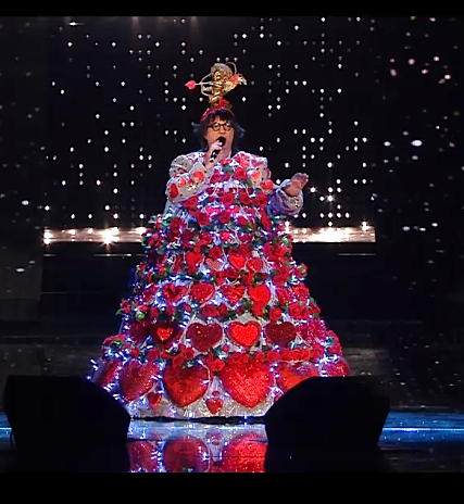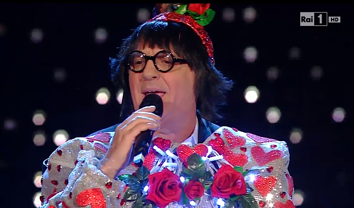 Di nuovo pausa per accogliere Panariello che entra addobbato come un albero di Natale, ma ispirato a San Valentino, nella divertente (e riuscita) imitazione di Renato Zero, suo cavallo di battaglia.