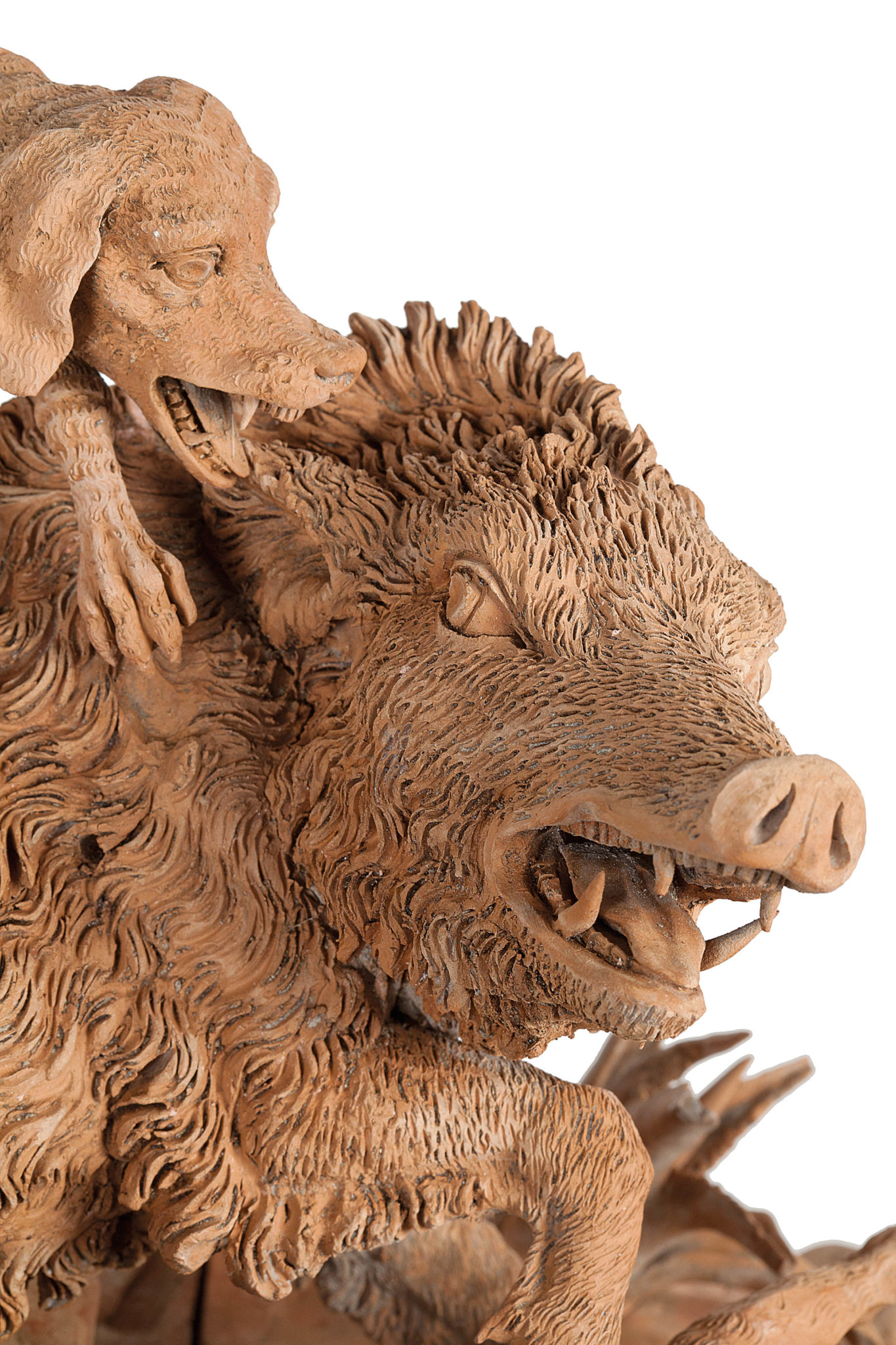 Di grande piacevolezza e facente parte di una collezione di porcellane di una signora torinese, una caffettiera in porcellana bianca, manifattura Ginori a Doccia, circa 1750 con becco zoomorfo e manico a voluta (lotto 490 stima 800 – 1.200 euro) e una stupefacente terracotta realizzata da un artista napoletano del XVIII secolo assai vicino alla maniera di Francesco Gallo (attivo dal 1770 circa al 1829) – artista noto per la sua predilezione per le figure di animali, nelle quali ottiene un ricercato effetto nella resa del manto, evidente nelle sue opere – raffigurante un’agghiacciante lotta tra un cinghiale e un gruppo di tre cani (lotto 541 stima 4.000 – 6.000).