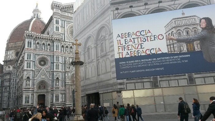 I soci e i clienti dei supermercati Coop hanno donato oltre 45 mila euro per il restauro del Battistero di Firenze. Seimila persone hanno aderito all’iniziativa, donando dai 10 ai 50 euro. L’iniziativa di ‘mecenatismo popolare’ si chiama “Abbraccia il battistero“. L’obiettivo è di aggiungere i 100 mila euro come contributo al restauro che complessivamente costerà all’Opera del Duomo quasi 2 milioni di euro.
