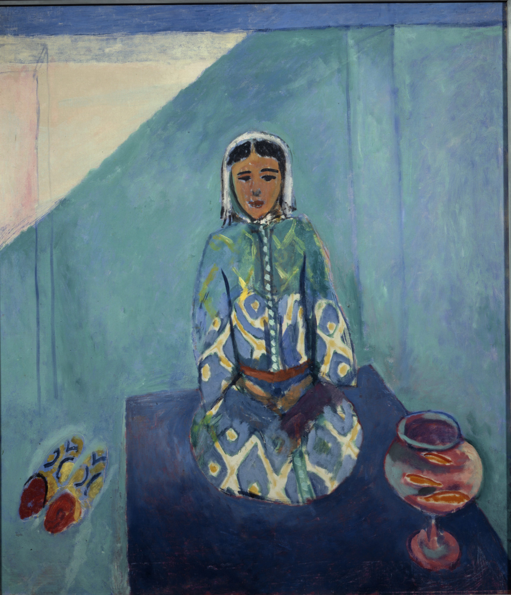 Il 29 gennaio 1912 parte alla volta di Tangeri. La modella di Zorah in piedi del 1912, che secondo le prescrizioni islamiche non poteva mostrare il volto, disertò l’atelier coartata dal fratello. Il pittore la ritrovò in occasione del suo secondo viaggio in Marocco in un postribolo. Il divieto coranico non includeva le prostitute e per questo il pittore riuscì a ritrarne liberamente il volto, così come nel dipinto Zorah sulla terrazza (1912-13), intriso dei colori azzurri e verdi delle maioliche mediorientali.