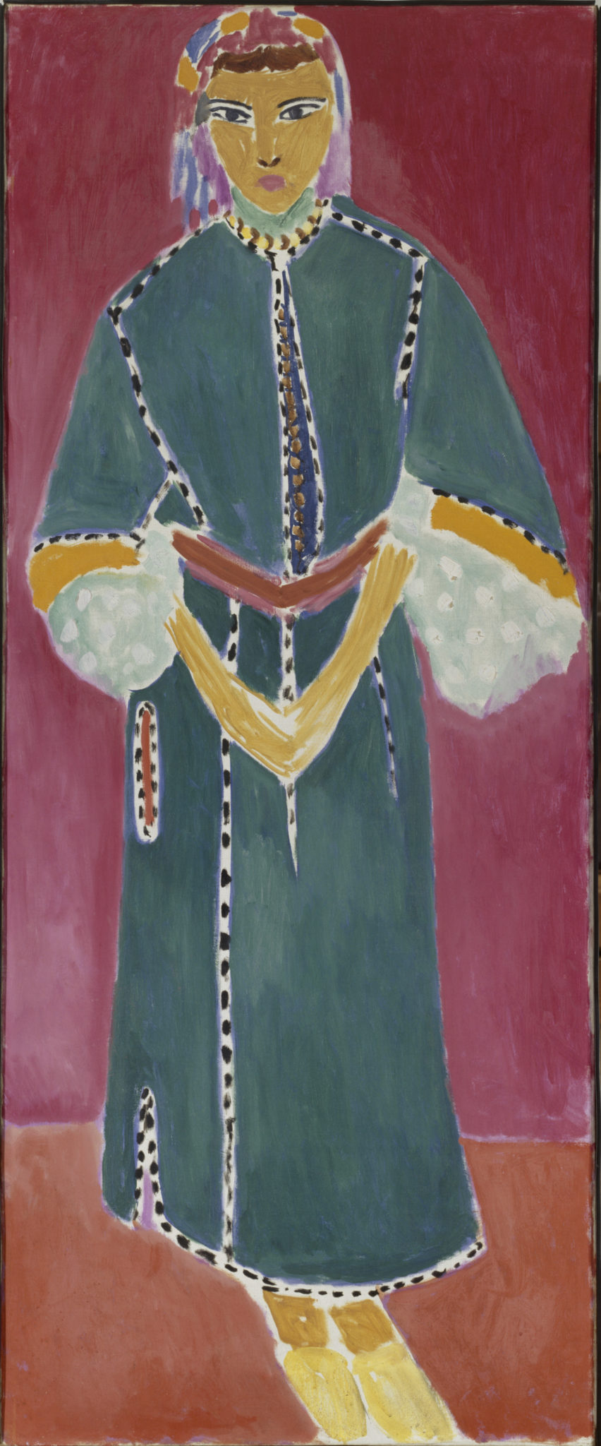 Il protagonista del Rifano in piedi (1912) è un rappresentante dei coraggiosi guerrieri marocchini “splendido e selvaggio come uno sciacallo”. Matisse ne fa il ritratto, con il solo colore, dopo averlo conosciuto. Il non-finito del pittore è evidente in La palma (eseguito a Tangeri nel 1912), dipinta rapidamente in poche sedute, che lascia intravedere il fondo della tela, illuminata da saette di colore. Uno degli ultimi dipinti eseguiti in Marocco è Calle, iris e mimose (1913). Attraverso i colori, distesi in campiture piatte, Matisse riconduce lo spazio del dipinto alla pura superficie bidimensionale, prendendo le distanze dallo spazio prospettico rinascimentale.