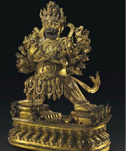 Tra gli highlights una scultura in bronzo dorato di Vajrabjairava Ekavira, della dinastia Ming, databile al XV secolo e stimata $4-6 milioni. Da diversi anni il mercato dell’arte non vede una tanto grande e significativa scultura tibeto-cinese. La sue dimensioni suggeriscono che è stata realizzata nei laboratori imperiali di Pechino nel XV secolo, durante la dinastia dei Ming, che fu periodo di grande fermento e scambio culturale e religioso.