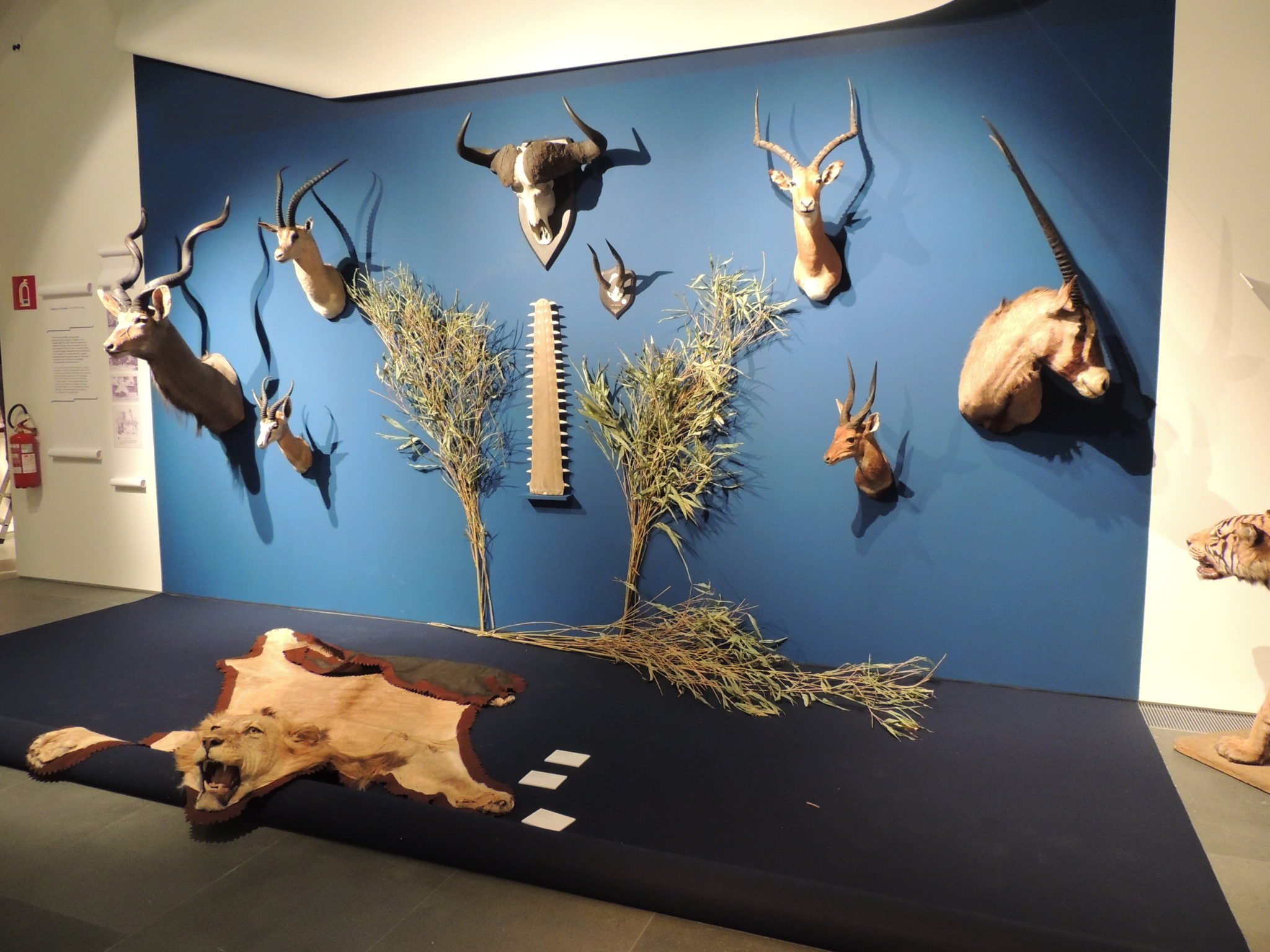 I materiali esposti sono molto eterogenei, si passa dai dipinti di Pompeo Mariani e dei pittori orientalisti, agli oggetti d’arredo, fino agli animali selvatici, stoffe e ceramiche. L’ultima parte è incentrata sugli aspetti architettonici urbanistici, con la ricostruzione della “zeriba” di Paolo Masera.