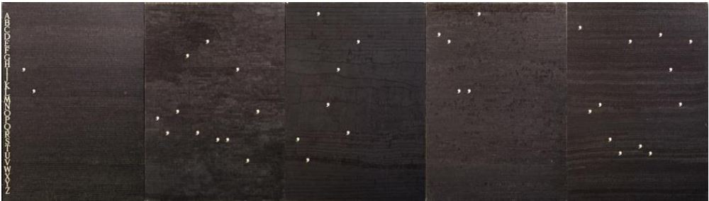 L’asta offre inoltre una selezione di opere di Alighiero Boetti, come Il progressivo svanire della consuetudine costituito da 5 pannelli, tipologia molto rara da trovare sul mercato (stima: €350,000–€550,000) e realizzata a mano nel 1974 circa attraverso un lungo processo di tratteggi a penna biro. Quando viste insieme, le centinaia di migliaia di striature si fondono in un’unica opera come un mare scintillante di tratti a biro. Il titolo dell’opera viene compitato nel codice linguistico di Boetti da sinistra a destra attraverso i cinque campi monocromi fluttuanti.