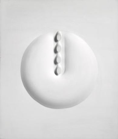 Troviamo poi due magnifici lavori tridimensionali di Agostino Bonalumi. Bianco, 1965 (stima: €180,000-€250,000), e Nero, 1963 (stima: €180,000-€250,000) sono entrambi raffinati esempi dei primi anni della produzione dell’artista. Riconcependo la tela come un oggetto percettivo in quanto tale, agli inizi degli anni ’60 Bonalumi iniziò a realizzare le sue opere inserendo dei cuscinetti sotto la superficie pittorica, creando un elemento formale di base su cui la luce, il colore e lo spazio potessero interagire.