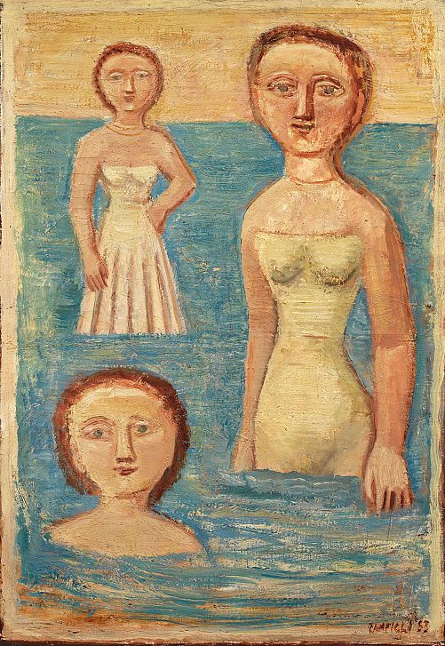 Massimo Campigli (Berlino 1895 Saint-Tropez 1971) BAGNANTI olio su tela, cm 91,5×65 Aggiudicazione: € 148.800