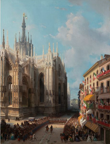“Veduta del fianco settentrionale del Duomo di Milano; ritorno dal Te Deum la mattina del 9 giugno 1859”