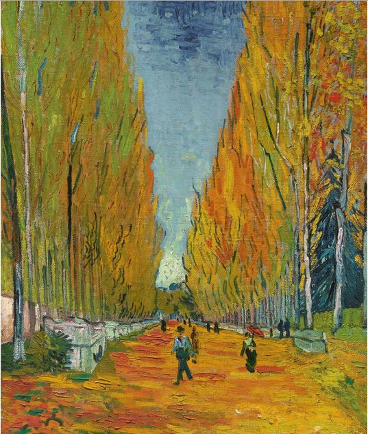 L’opera in questione è “L’Allée des Alycamps”, un lavoro del 1888 appartenente al suo leggendario periodo ad Arles al quale risalgono le più celebri composizioni, quali i Girasoli, l’Autoritratto, L’Arlésienne e Le café de nuit. E’ anche il periodo idillico della relazione tra Van Gogh e Gauguin, poco prima che le tensioni tra i due colleghi che avevano lavorato nel sud della Francia fianco a fianco, sfociassero in una violenta fine che portò Gauguin a lasciare l’Europa alla volta del Pacifico.