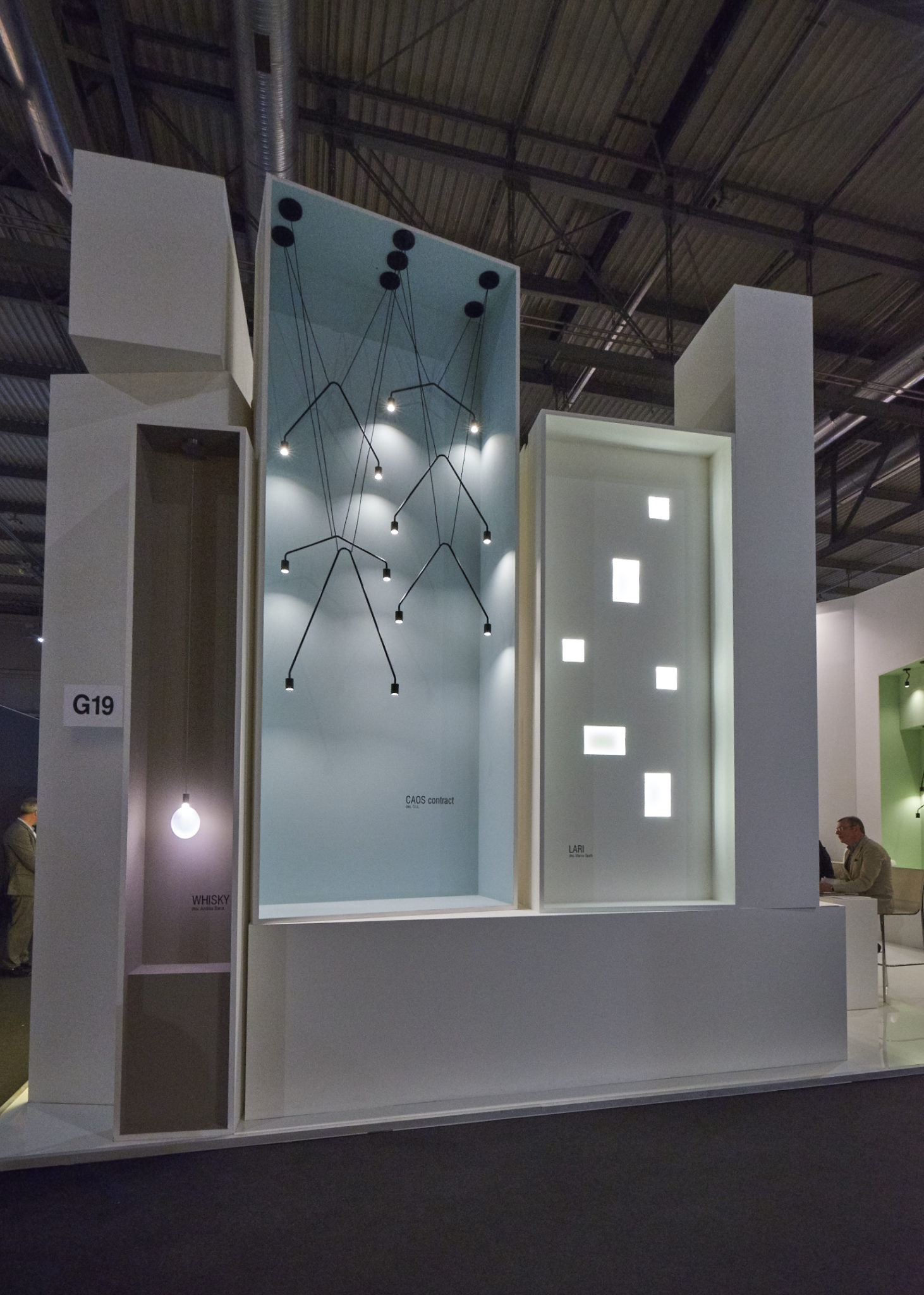 “Area”, che parla di regole e rigori che ordinano linee nello spazio. Suggestivi incroci di forme sospese a mezz’aria a creare installazioni e composizioni praticamente infinite. “Ala”, che nasce da un semplice gioco di una piega sui fogli A4 su una fotocopiatrice e pare aprire la parete per dare spazio alla luce. E “Lari” che prende il nome dalle figure in terracotta che gli antichi romani custodivano in nicchie ricavate da pareti e che si lega alla magia di veder nascere la luce direttamente dal muro. Tre illuminazioni fortemente e dichiaratamente architettoniche.