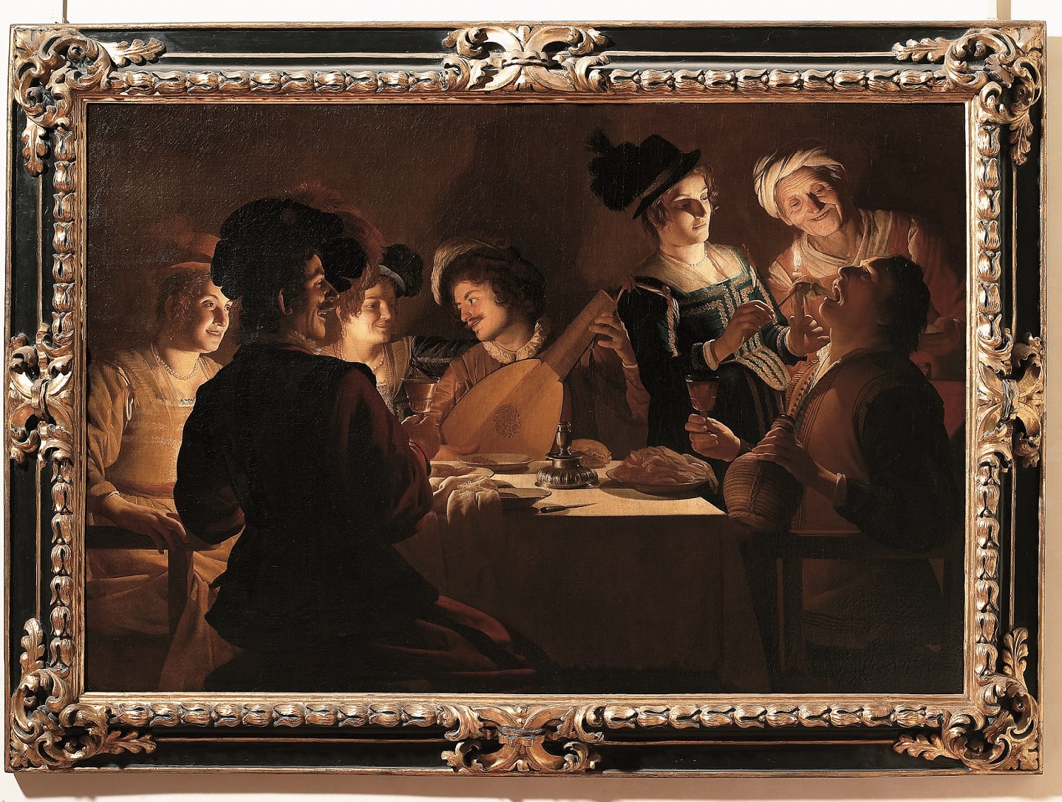 L’olandese deve il suo successo a collezionisti come Vincenzo Giustiniani (‘Cristo dinanzi a Caifa’ della National Gallery, eccezionalmente prestato alla mostra) e il Granduca di Toscana Cosimo II, per il quale dipinse diverse tele con scene di banchetti come ‘Cena con suonatore di liuto’ (1619-20).