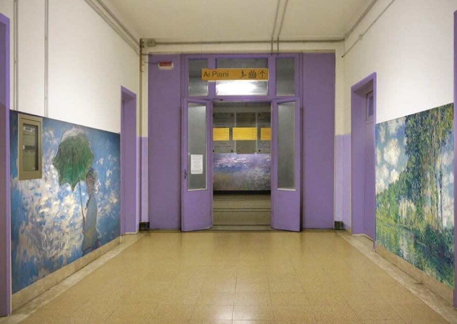 Al padiglione 4, quello che ospita ostetricia e ginecologia, sono state riprodotte ” Le ninfee di Monet “, contribuendo così al piano di riqualificazione di quest’ ala dell’ospedale.