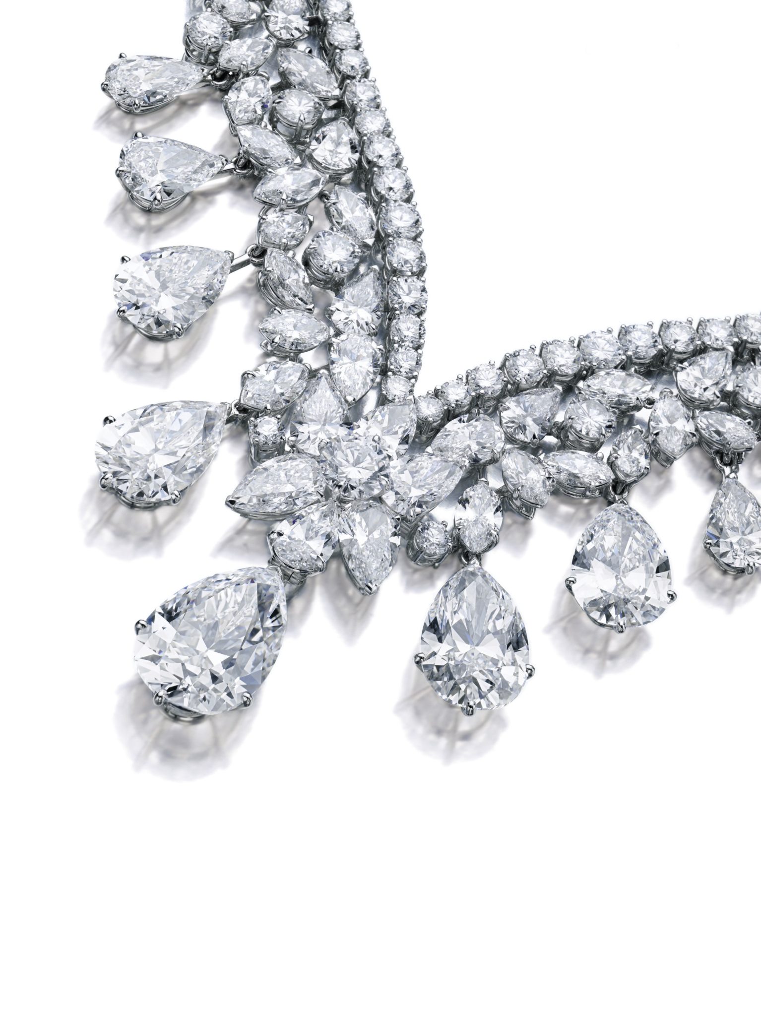 La Collana, una cascata di diamanti,tra i quali una frangia di nove diamanti di taglio a goccia, è stimata CHF 5,850,000-9,750,000/US$ 6,000,000-10,000,000(LOT 501).