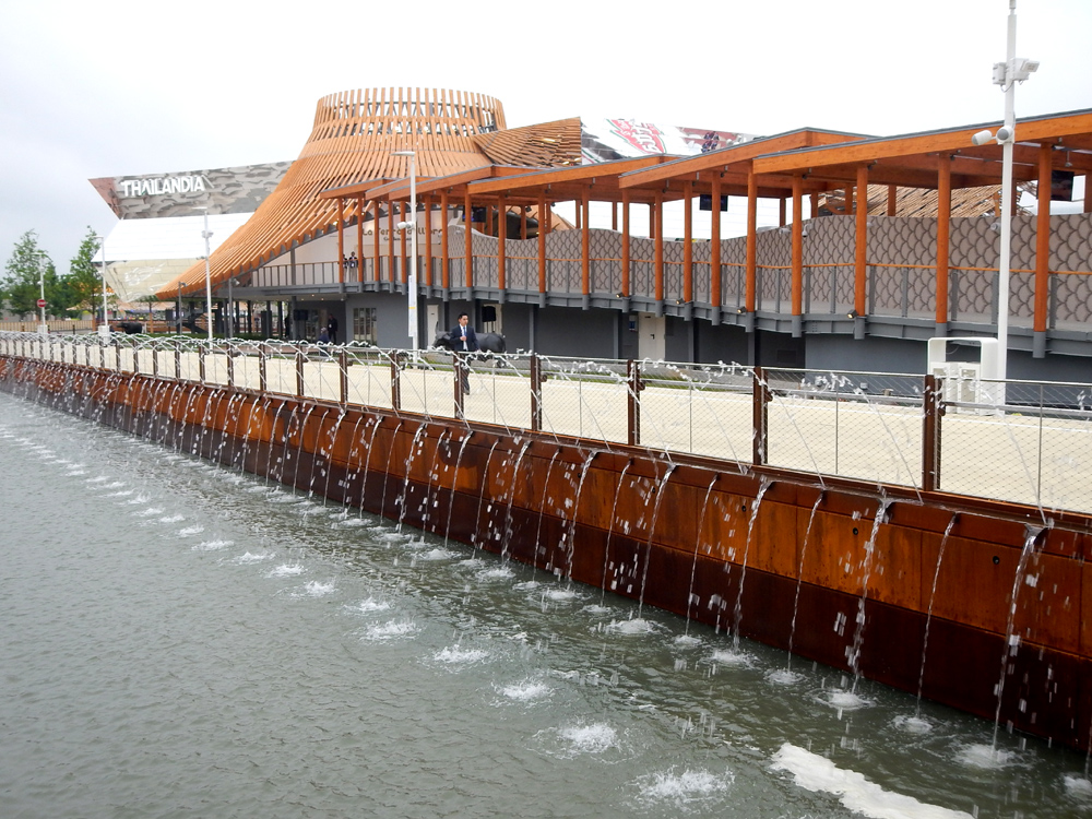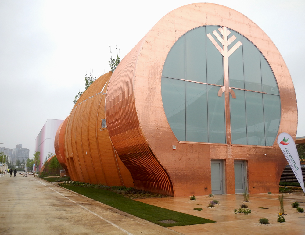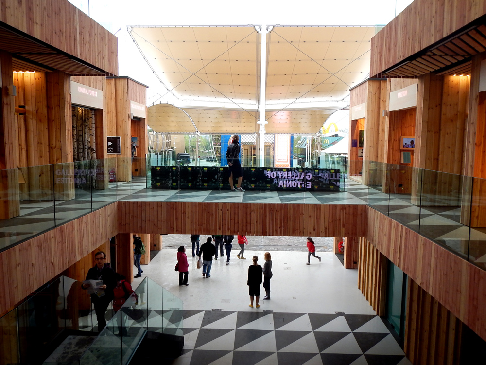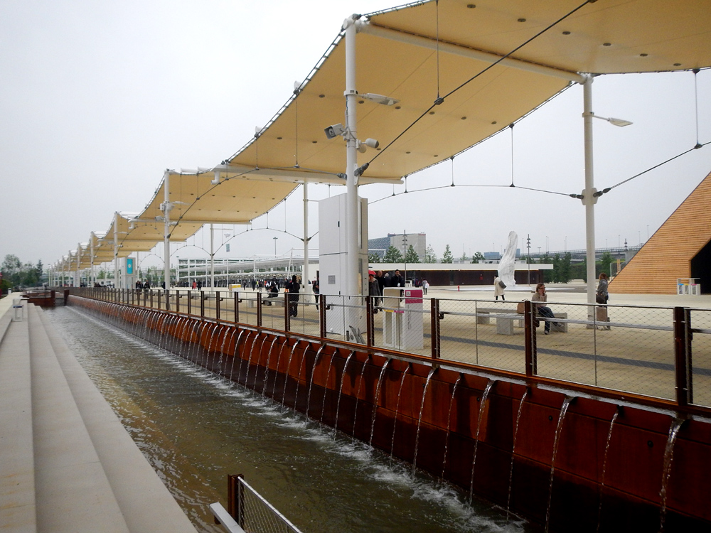 Totale: un’area grande più di un milione di metri quadrati (110 ettari) tagliata da 2 strade ortogonali: il Cardo e il Decumano (detto anche World Avenue). Quest’ultima è la via principale coperta che attraversa tutta l’area di Expo sul lato lungo, da est a ovest, per circa un chilometro e mezzo, dall’Expo Centre fino alla Collina Mediterranea e la Piazza della Biodiversità. Il Cardo (completamente italiano) si interseca perpendicolarmente con il Decumano ed è lungo circa 350 metri, dall’ingresso a Sud, Merlata, all’estremo Nord dove sorge il simpatico (finché non si illumina e si bagna in un elogio clamoroso del kitsch) Albero della Vita di Balich, imprenditore e produttore, nonché Direttore Artistico del Padiglione Italia, prestato all’arte e all’architettura (e alla botanica). 40 metri di legno e acciaio intrecciati con chioma “michelangiolesca” scanditi da spettacoli molto scenografici di giochi d’acqua e di luce a ritmo di musica, circondati dalla Lake Arena, tremenda definizione semi-esterofila per definire lo spazio che dà sullo specchio d’acqua di centro metri quadrati di diametro su cui sorge l’albero.