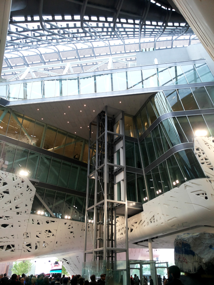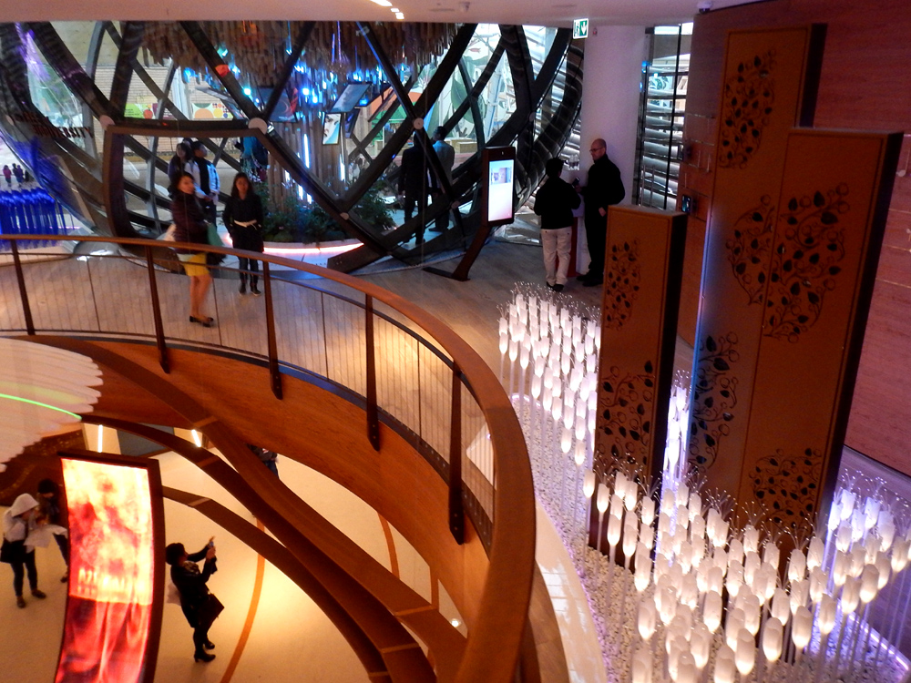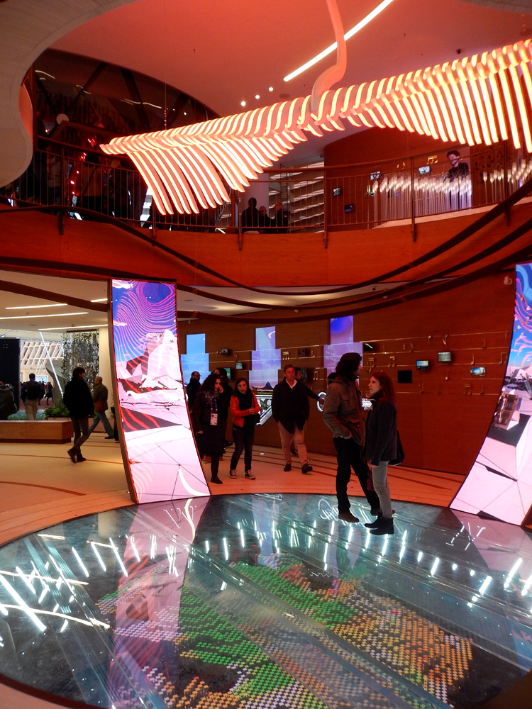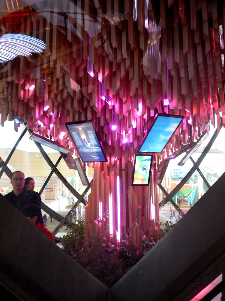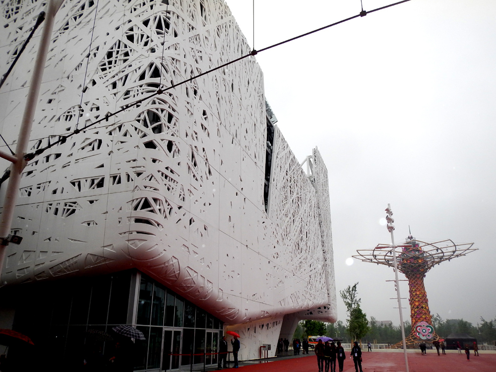 Totale: un’area grande più di un milione di metri quadrati (110 ettari) tagliata da 2 strade ortogonali: il Cardo e il Decumano (detto anche World Avenue). Quest’ultima è la via principale coperta che attraversa tutta l’area di Expo sul lato lungo, da est a ovest, per circa un chilometro e mezzo, dall’Expo Centre fino alla Collina Mediterranea e la Piazza della Biodiversità. Il Cardo (completamente italiano) si interseca perpendicolarmente con il Decumano ed è lungo circa 350 metri, dall’ingresso a Sud, Merlata, all’estremo Nord dove sorge il simpatico (finché non si illumina e si bagna in un elogio clamoroso del kitsch) Albero della Vita di Balich, imprenditore e produttore, nonché Direttore Artistico del Padiglione Italia, prestato all’arte e all’architettura (e alla botanica). 40 metri di legno e acciaio intrecciati con chioma “michelangiolesca” scanditi da spettacoli molto scenografici di giochi d’acqua e di luce a ritmo di musica, circondati dalla Lake Arena, tremenda definizione semi-esterofila per definire lo spazio che dà sullo specchio d’acqua di centro metri quadrati di diametro su cui sorge l’albero.