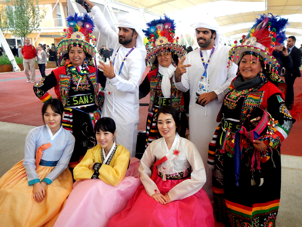 Tanti (forse troppi) marchi, qualche infausta (e inutile) multinazionale, inglesismi inutili ed eccessivi per essere sempre più “cool” (evitabilissimi) e qualche schifezza qua e là un po’ trash, un po’ kitsch (si veda e si senta la musica tamarra allo spazio Technogym con schiera di assatanati “ciclisti” guidati da imbarazzante motivatore urlante, che c’entrerà mai l’alimentazione..). Per il resto grandi architetture che si intrecciano fra loro, luci, spettacoli, musiche, danze, costumi e chincaglierie tradizionali (al limite del macchiettistico) e tonnellate di cibo di tutti i colori da tutte le parti del mondo. Una bella atmosfera che ogni tanto si infrange contro i nascondenti teloni camouflage e su qualche operaio con trapano e ruspa impegnato nelle retrovie ad ultimare scenari e scenografie varie. Expo comunque nel complesso c’è e non può che affascinare. Il giro del mondo in sei mesi, dal primo maggio al 31 ottobre a Milano.