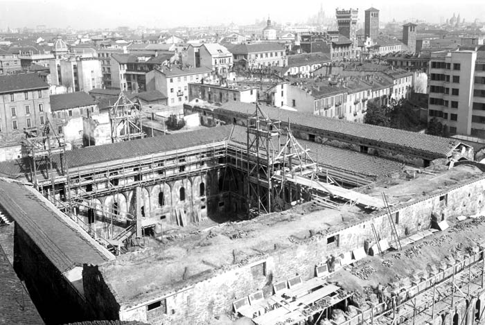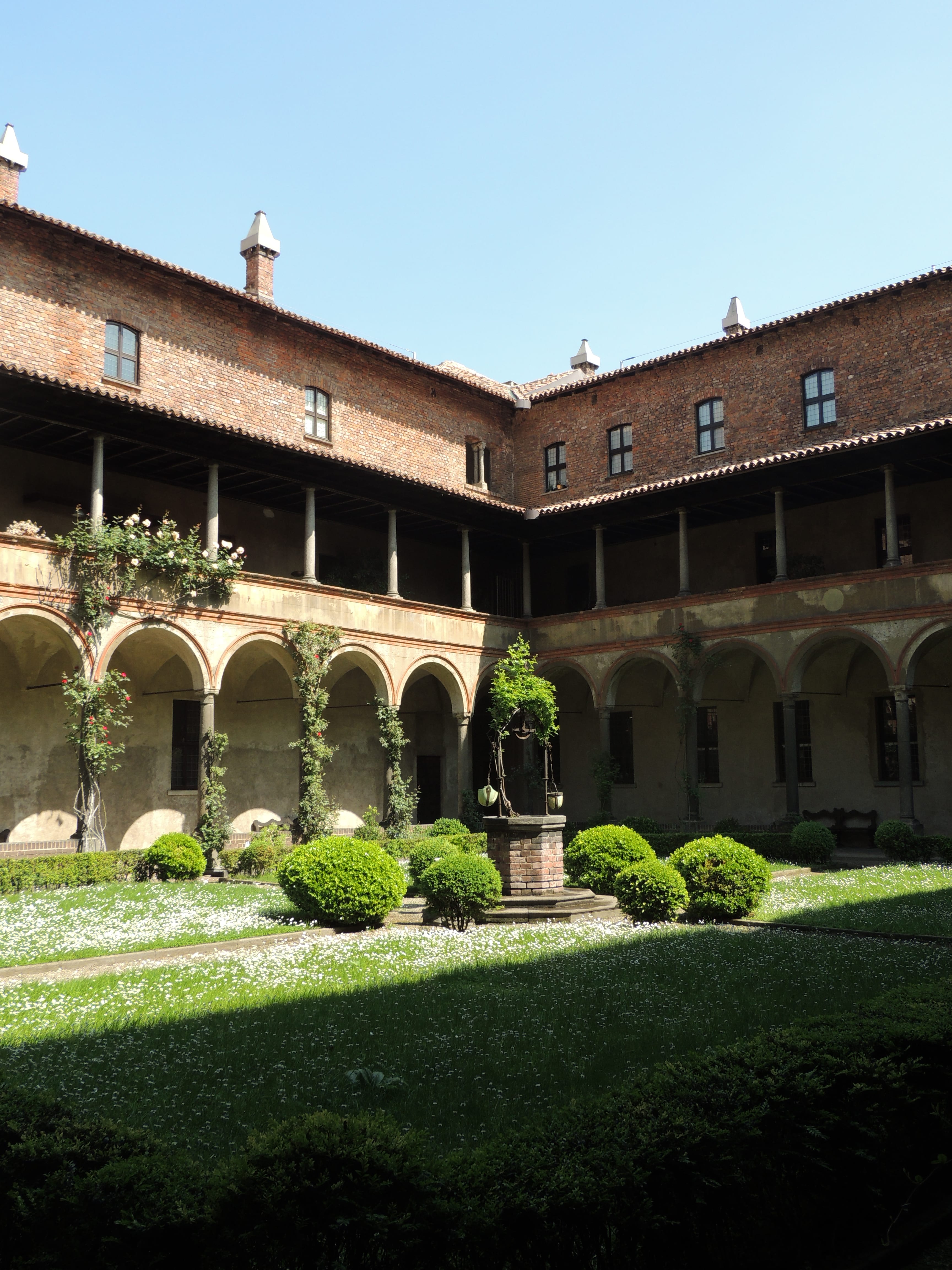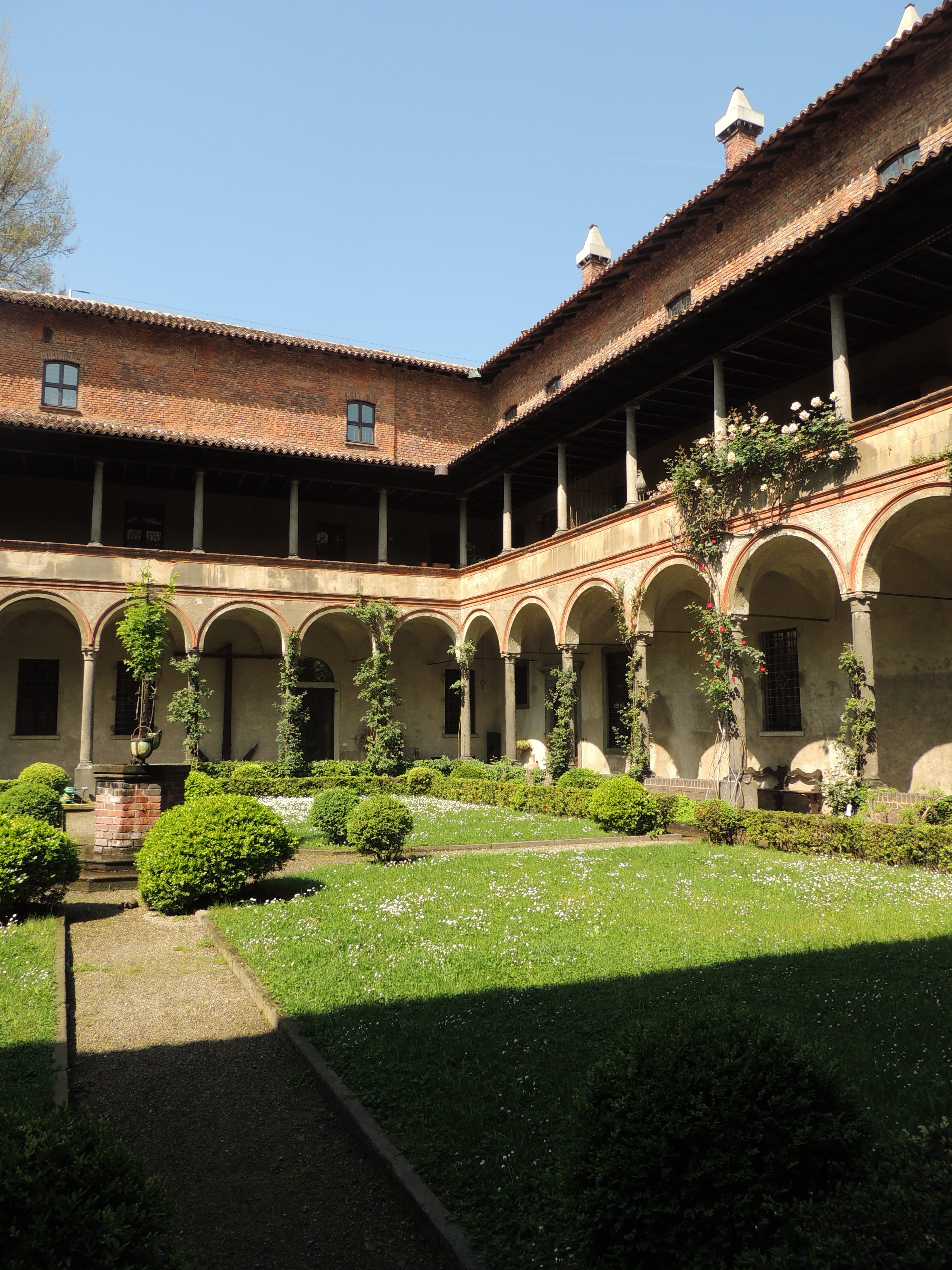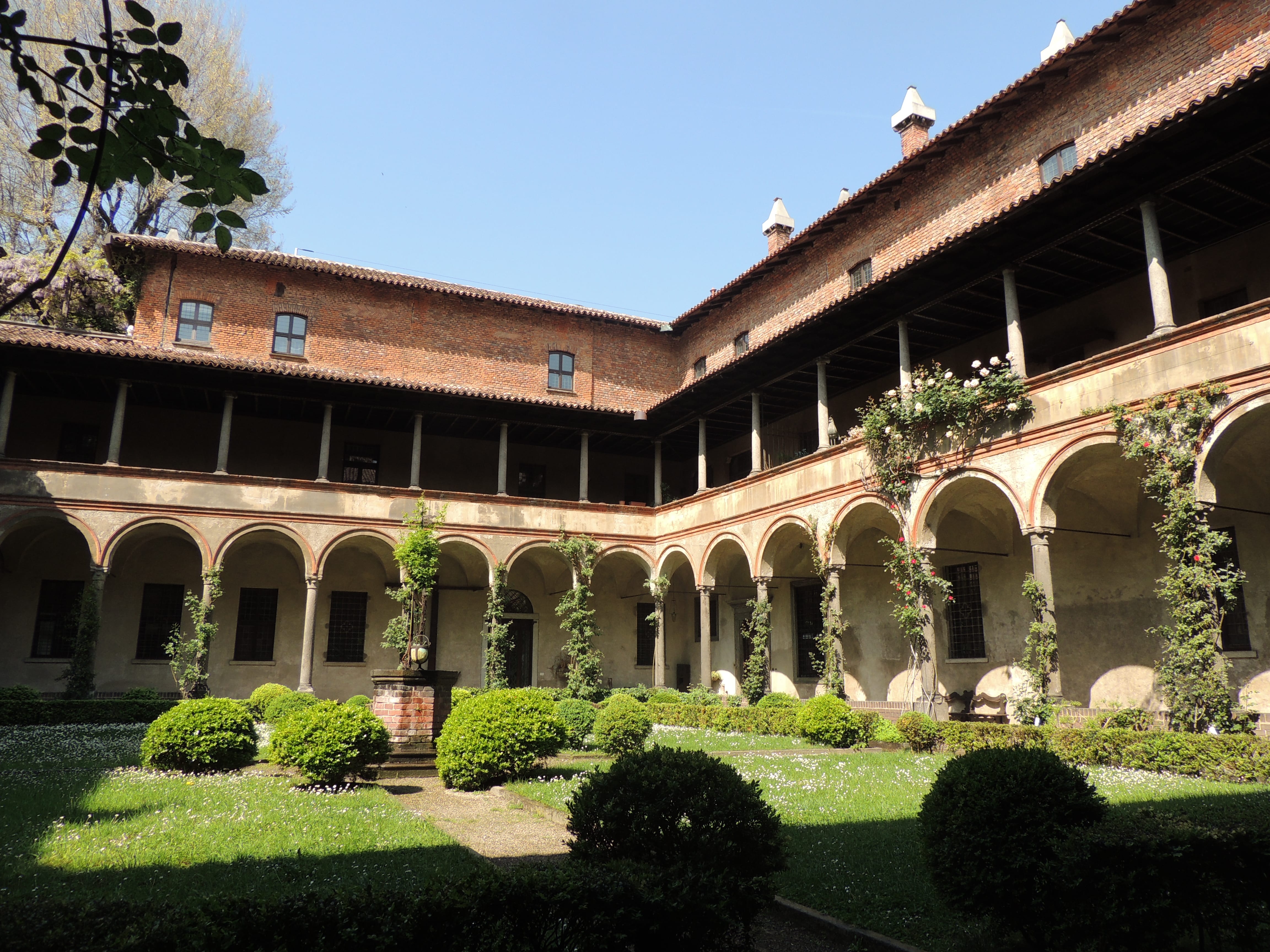 “Esempio felice di unione tra la tradizione architettonica lombarda e la lezione fiorentina importata da Bramante e Filarete” come l’ha definito la storica dell’arte Manuela Alessandra Filippi, il Chiostro ha riacquistato una forma il più possibile simile all’originale grazie a una grande opera di restauro eseguito dopo il 1915.