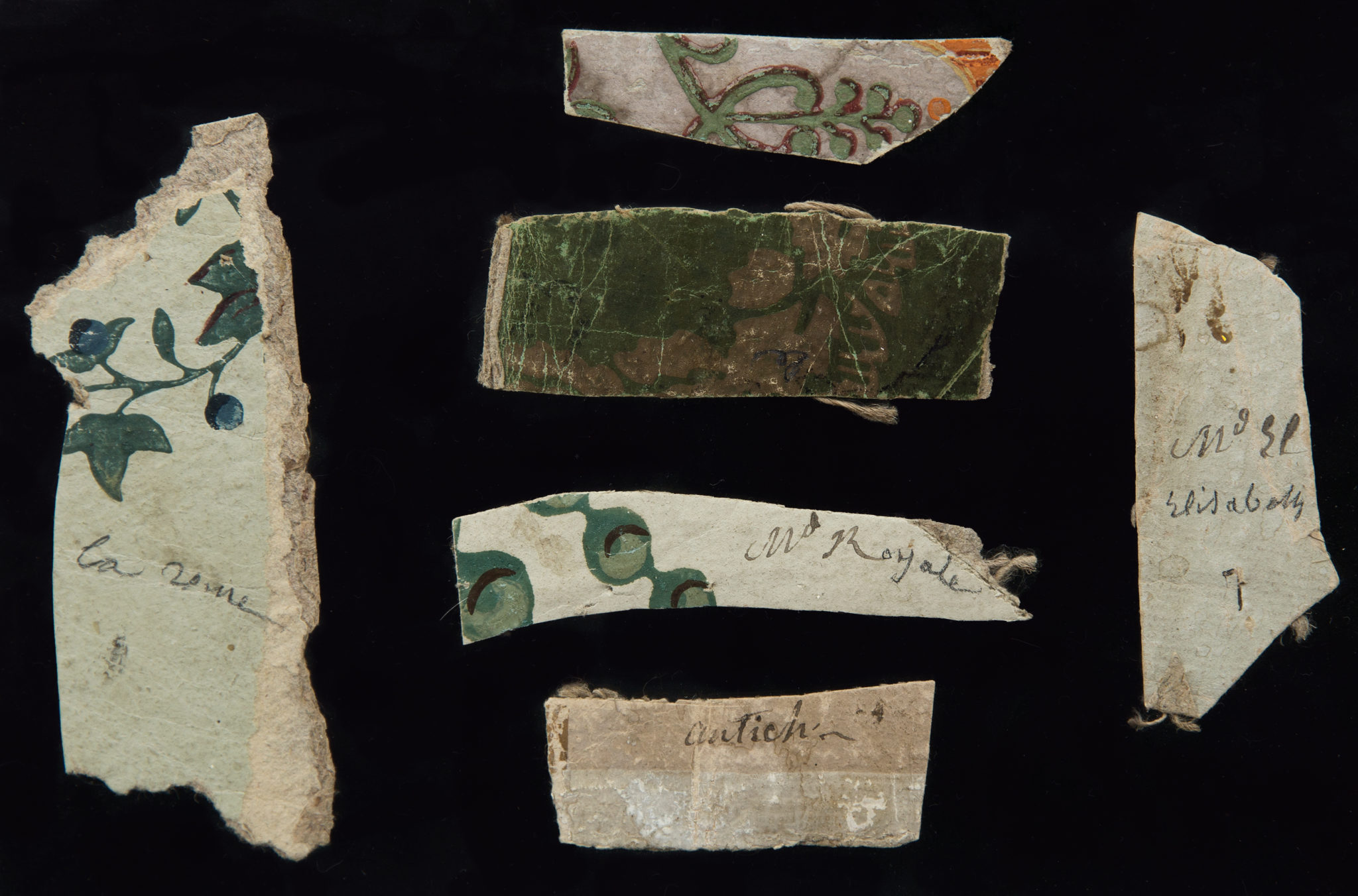 Sei frammenti della carta da parati provenienti dalle mura delle loro “celle”