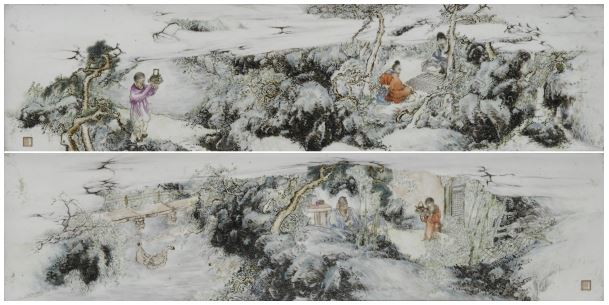 Tra le opere del periodo della Repubblica di Cina (1912-1949), notevoli sono le due placche in porcellana dipinte con letterati in scene di paesaggio.