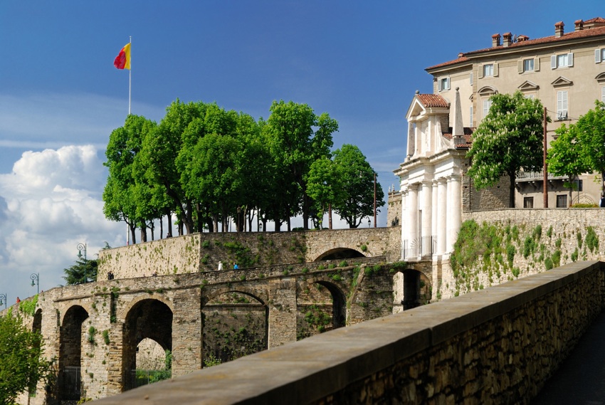 In primo luogo, la sua storia millenaria ha lasciato innumerevoli tracce nel patrimonio artistico e culturale, riscontrabili soprattutto a Bergamo Alta, quella parte della città delimitata dalle Mura Venete costruite nel ‘500 e tuttora perfettamente integre. Nella muraglia furono collocate quattro porte, ciascuna delle quali corrispondeva alle principali vie di comunicazione con il territorio e le altre città. Tale concentrazione artistica e storica facilita la visita del turista, offrendogli la possibilità di percorrere a piedi i vicoli medievali all’ombra di torri e campanili. Inoltre, le mura sono ufficialmente candidate a essere patrimonio dell’umanità dell’Unesco 2016.